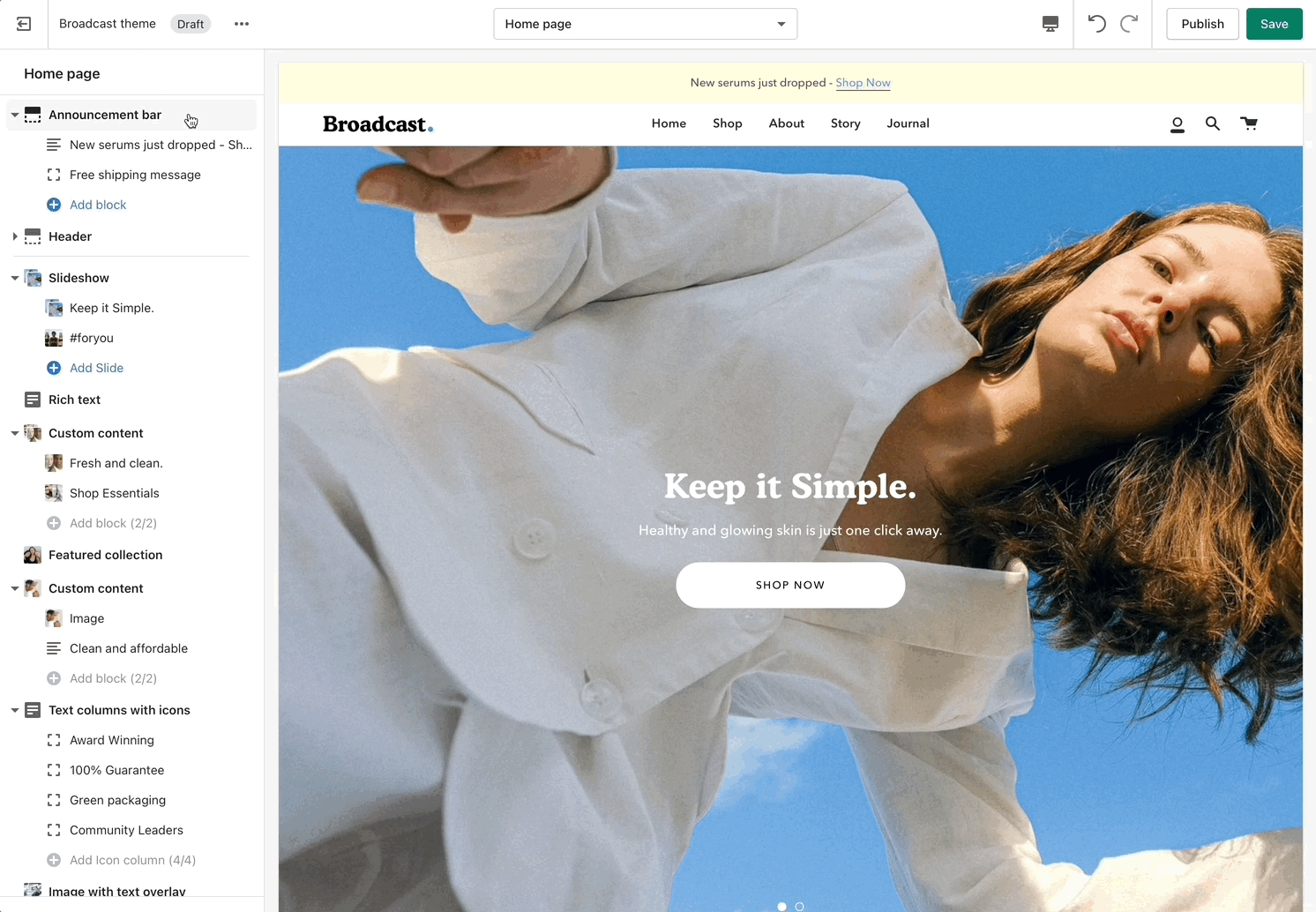 Announcement bar settings and layout options