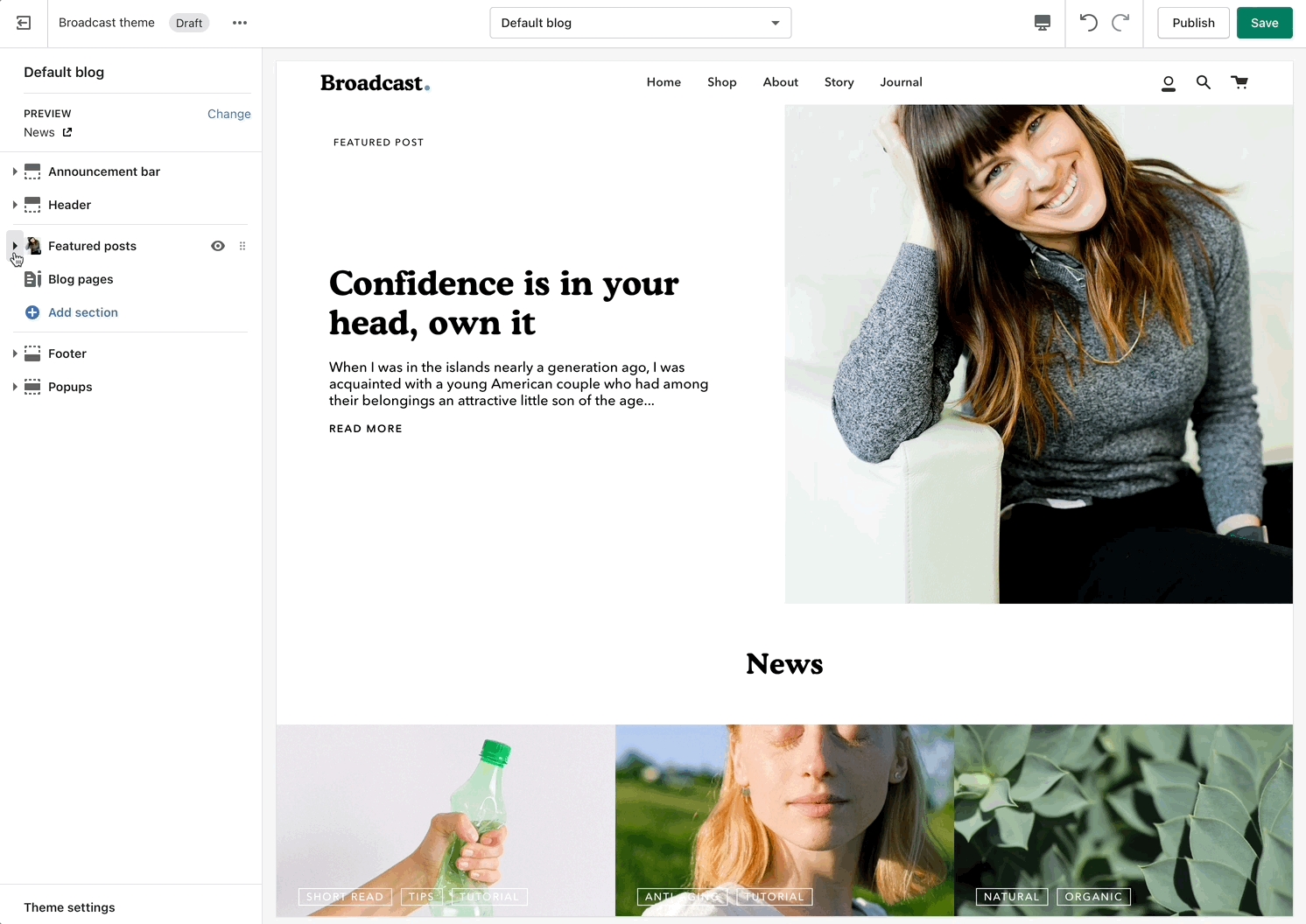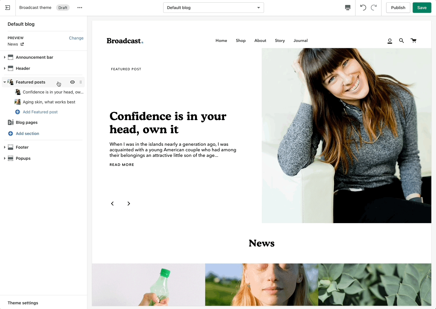 Broadcast highlights your key blog post articles at the top of the blog index page with Featured posts: