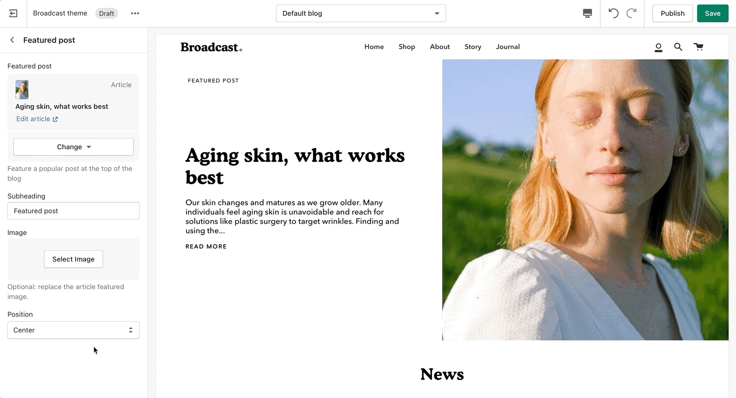 TIP - Use the Position controls to help adjust the position of your image. Alternatively, you can choose a different image for the Featured post.