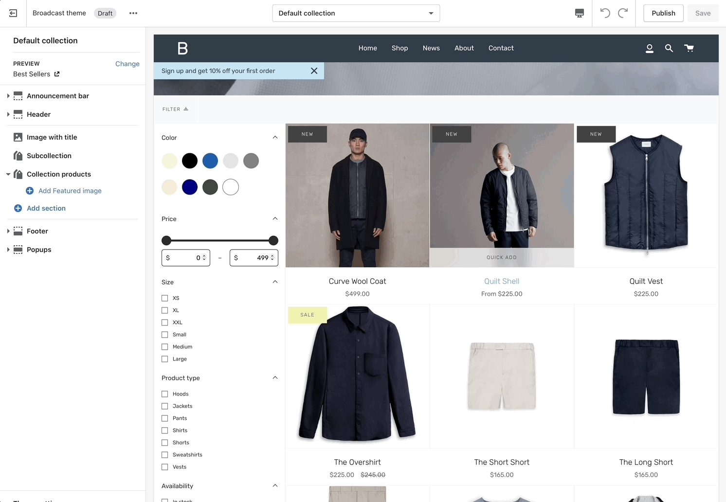 Products without variants are instantly added to the cart with one click when using Quick Add.