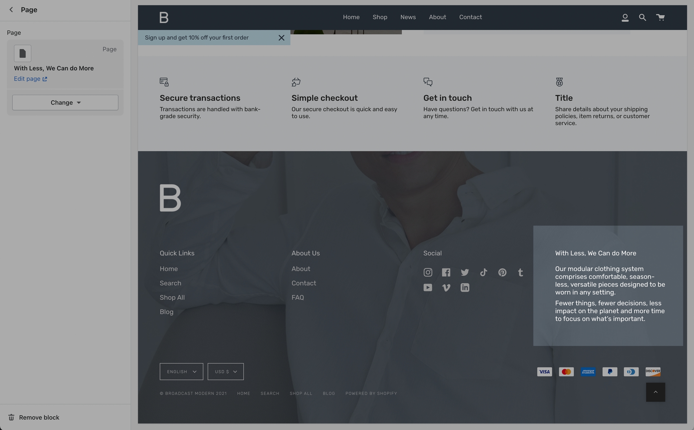 TIP - Create a custom menu designed for the footer with links to help customers find additional pages or content within your site.