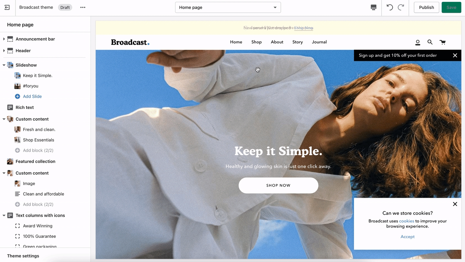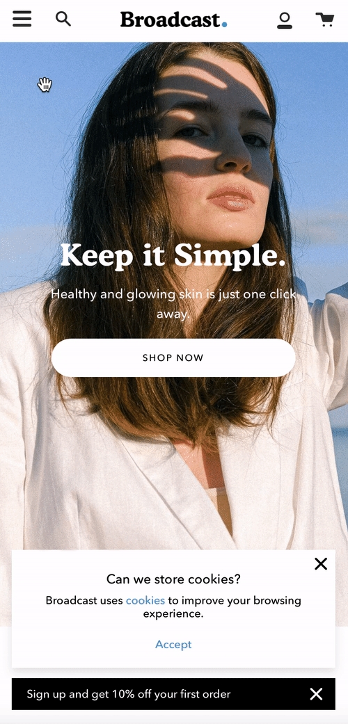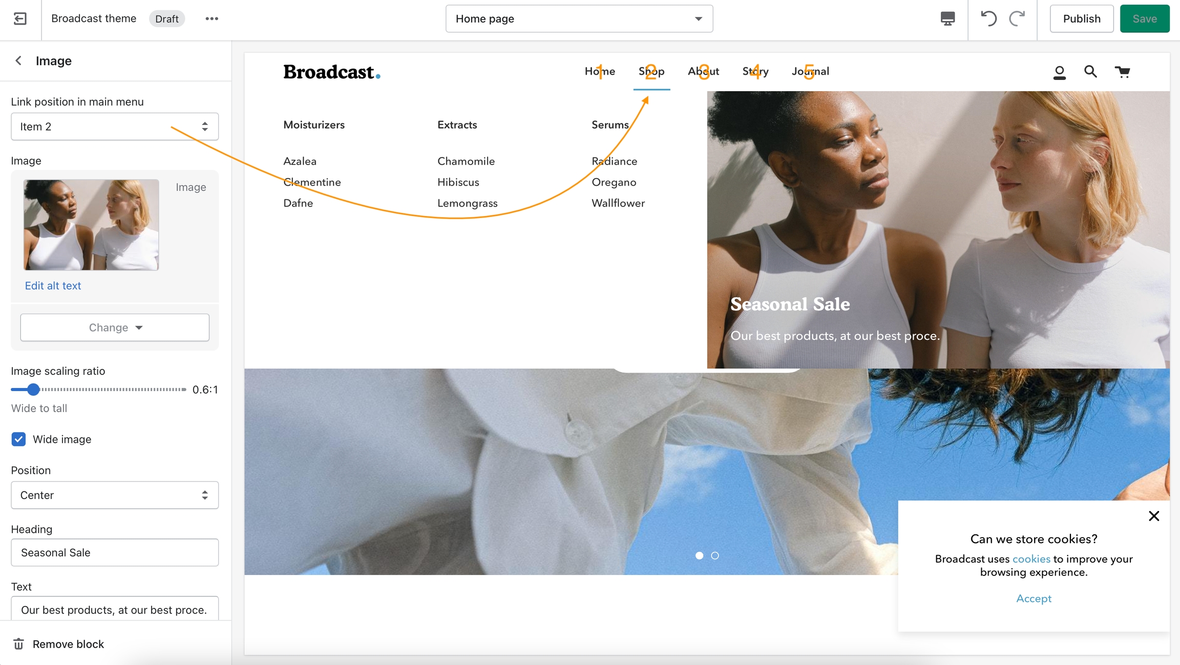 Broadcast makes it simple to add images right into your Navigation. You can create a drop-down menu with just images or a combination of menu items and images.