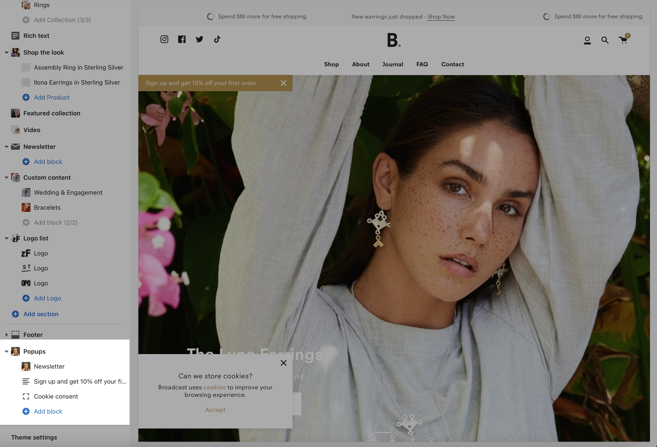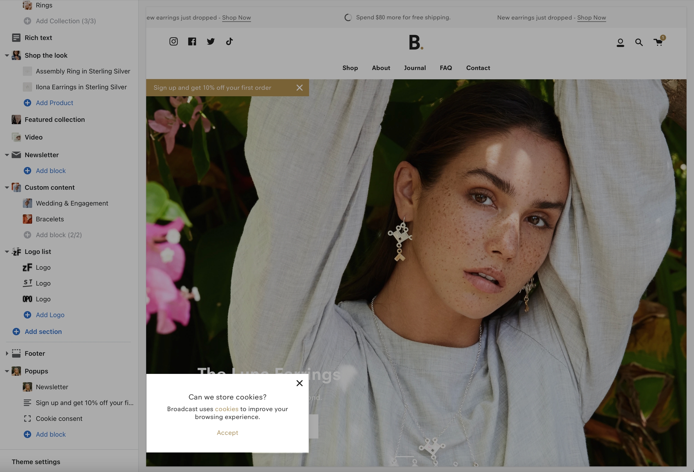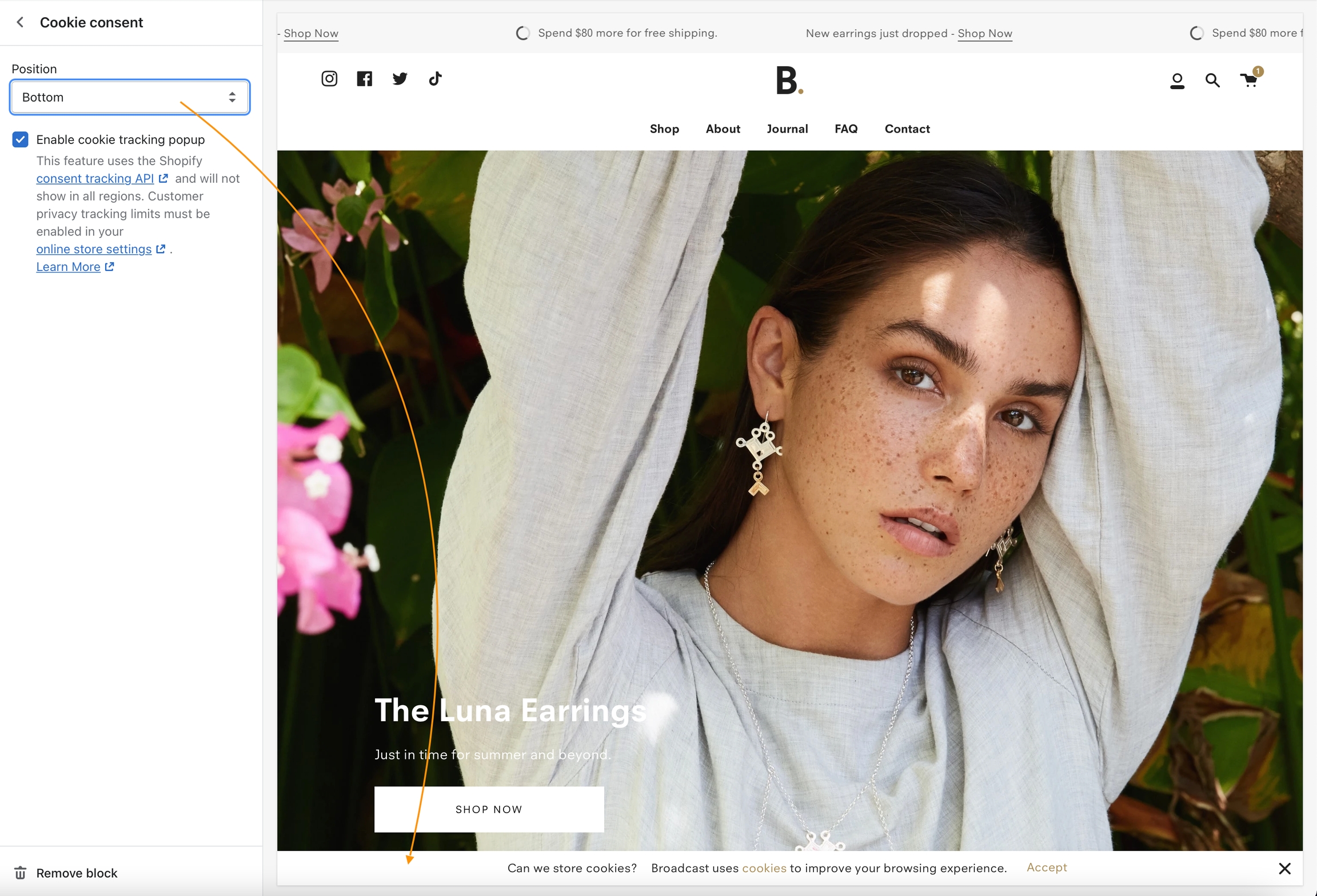 Broadcast includes a Cookies consent popup which allows you to display a message an accept button and a link to your Privacy Policy page:
