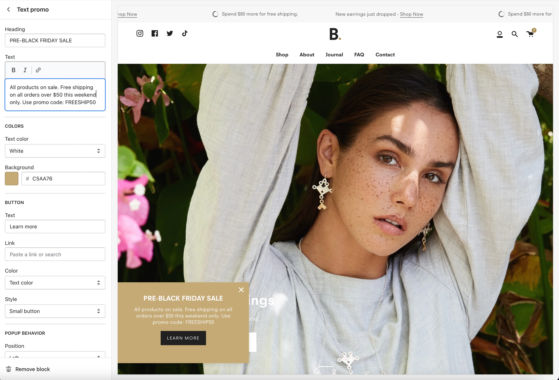 Display a custom popup to your customers only when the customer is browsing a certain page, product, collection, or blog post on your site. Target your message based on where customers are browsing on your site:
