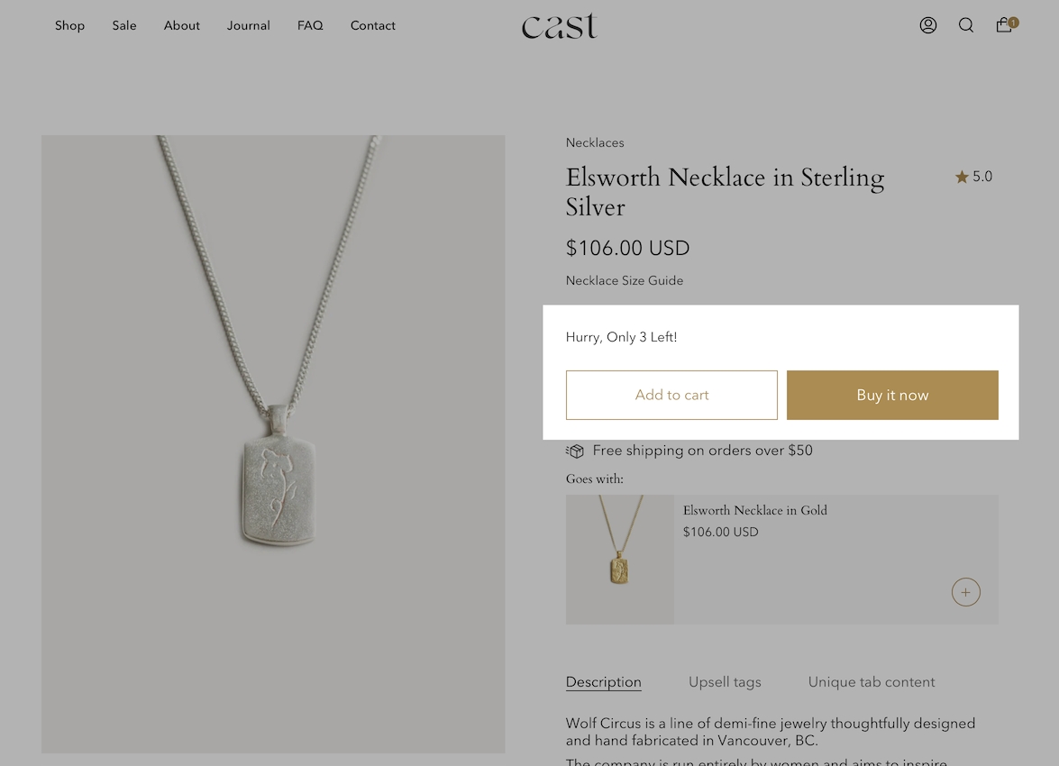Build a sense of urgency with Broadcast's low inventory message option in the product form: