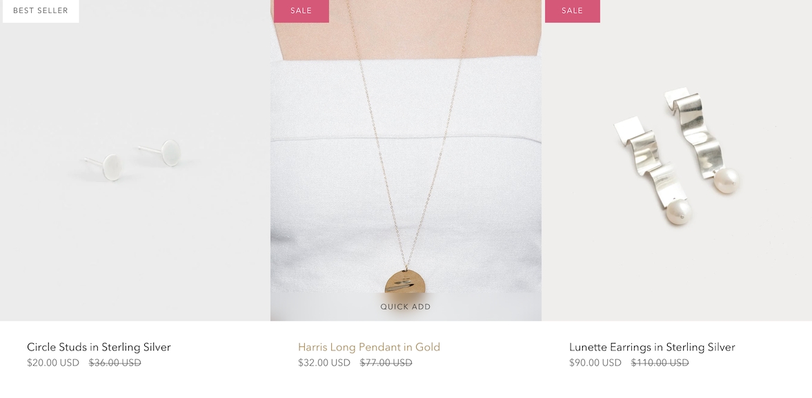 On a Collection page or any section that uses the Product Grid, Broadcast can add a custom color SALE badge over the product image: