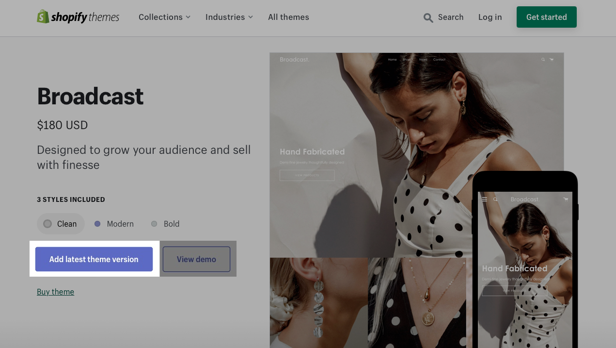 To download the latest version of Broadcast, please visit the Shopify Theme Store. The Shopify Theme Store is the official and only source for downloading Broadcast: