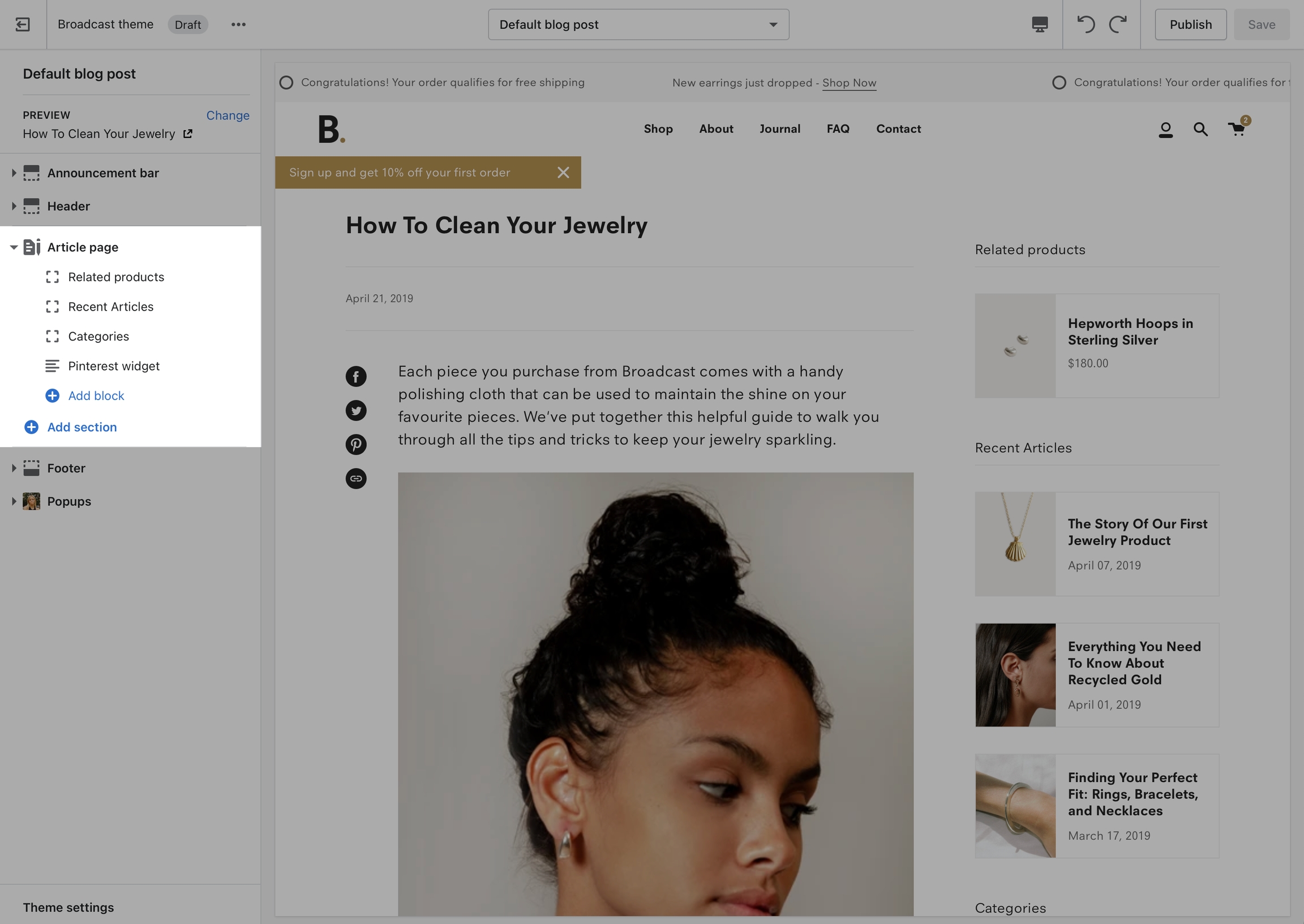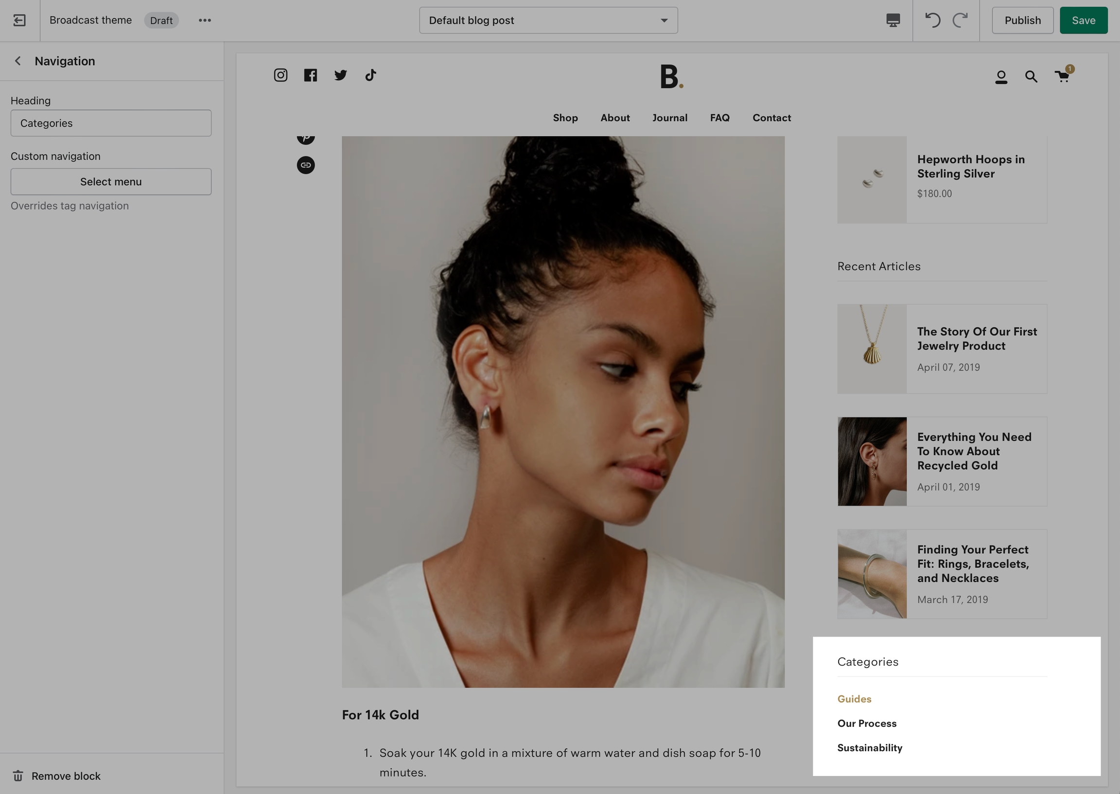 Broadcast theme blocks for Blog post pages and blog post templates help you customize the primary or core content for your blog post or also known as article pages.