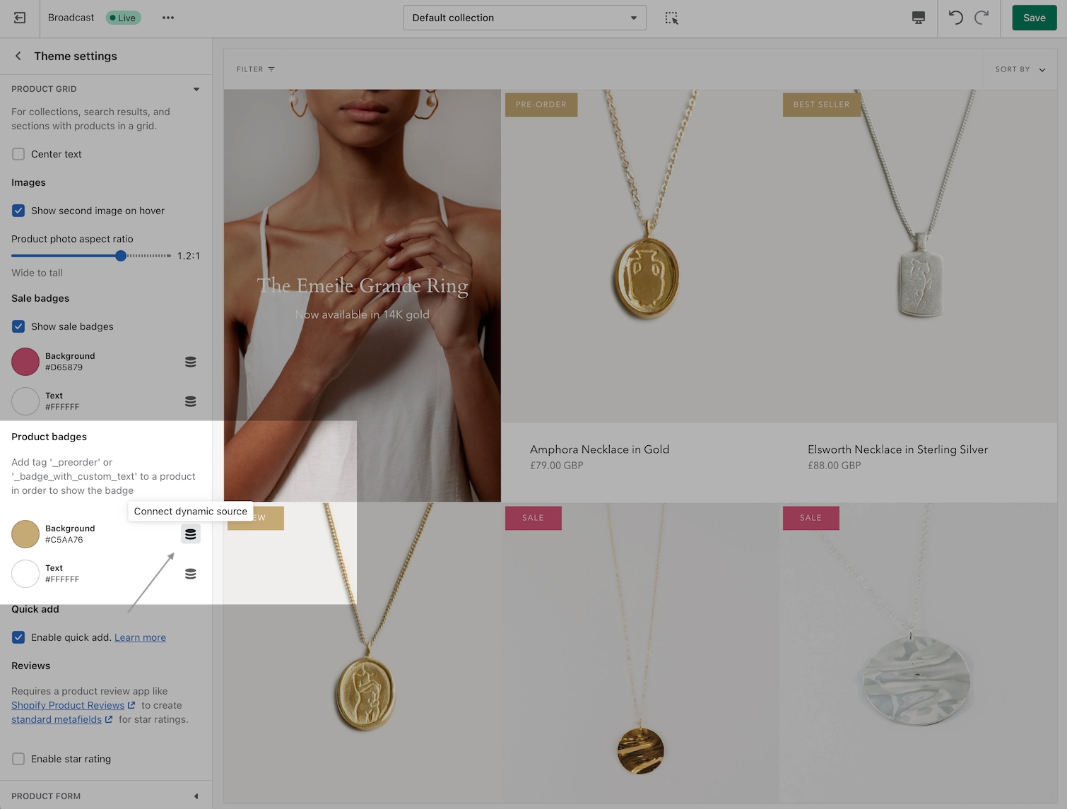 Broadcast makes adding custom individual product badges or sometimes known as stickers very easy to implement and manage by using metafields.