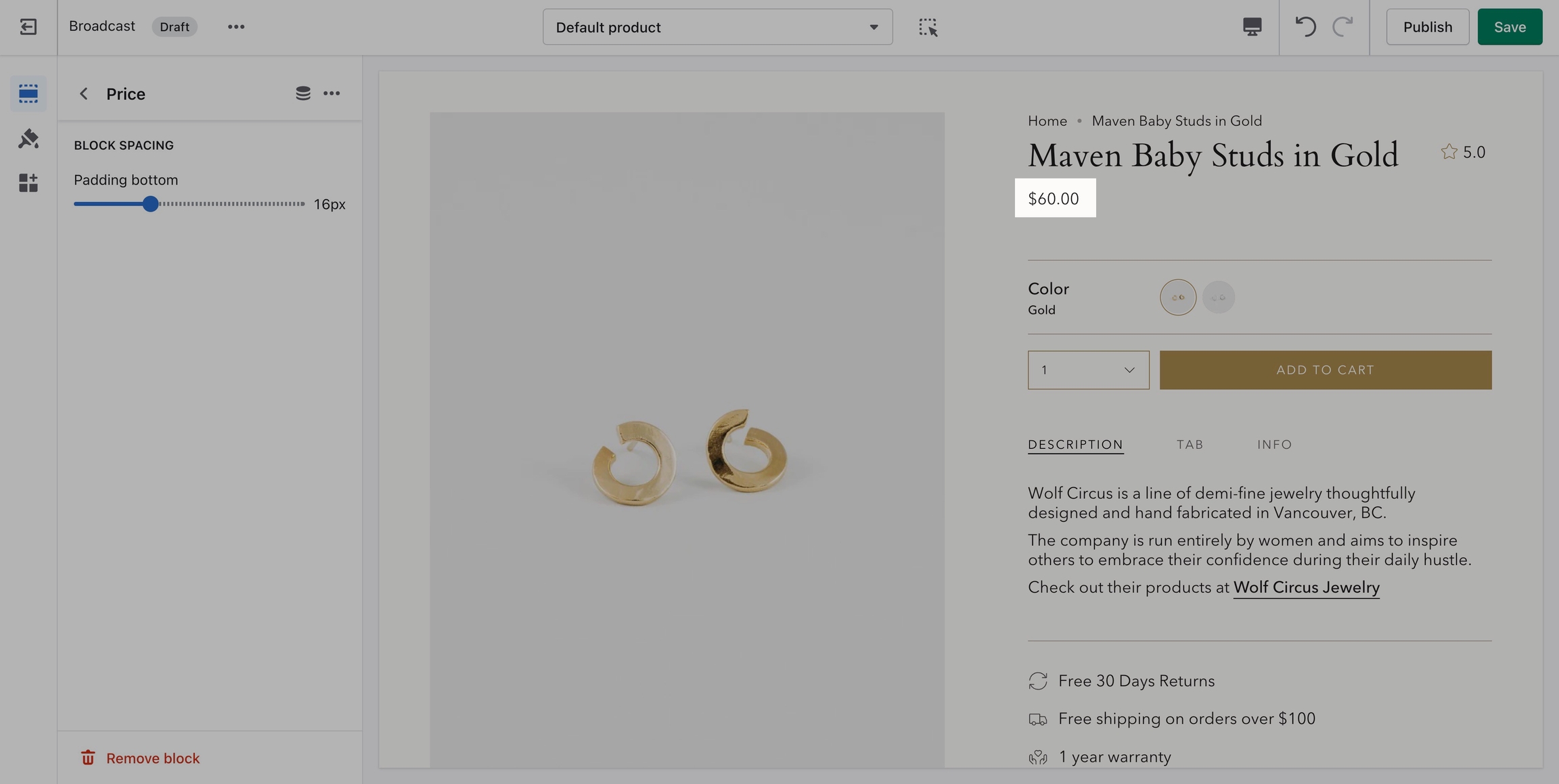 If the product price is set to $0, it's replaced by a translatable string - 'Free'.