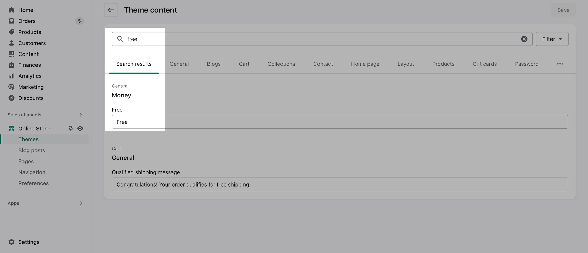 Search for free in the Filter bar and edit the field under General > Money > Free: