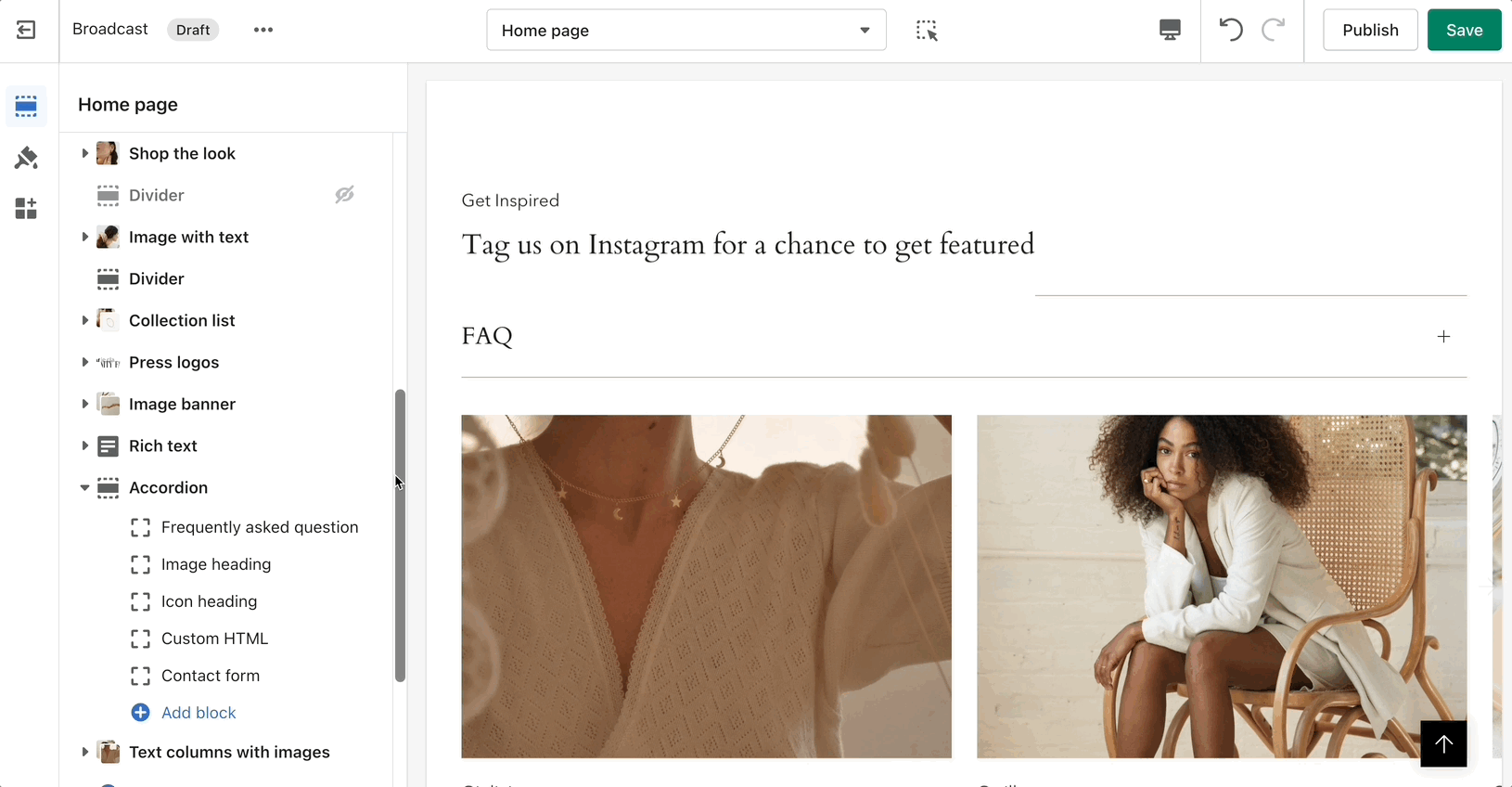 Mix and match blocks to string together a unique layout.