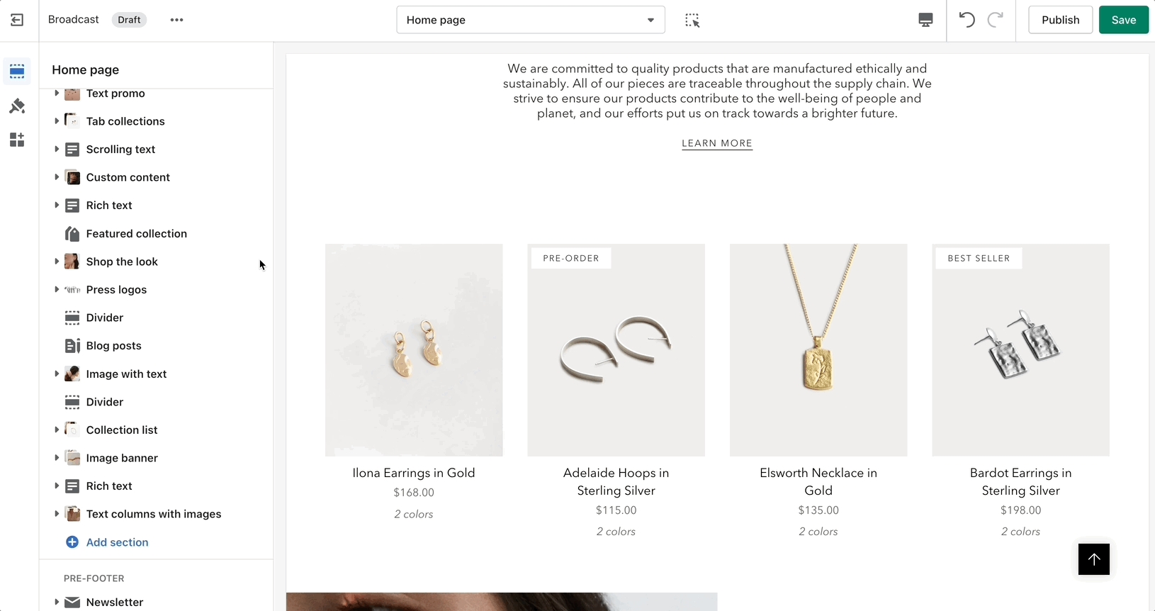 Some of the most commonly used settings are the option to set the number of products per row and the number of rows.