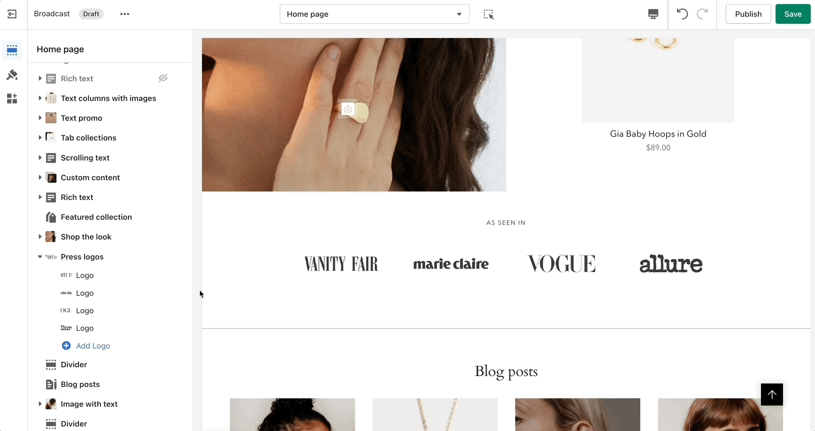 'Press logos' allows you to create a list of brand logos. Most often this is used to include partners or places your brand is featured.