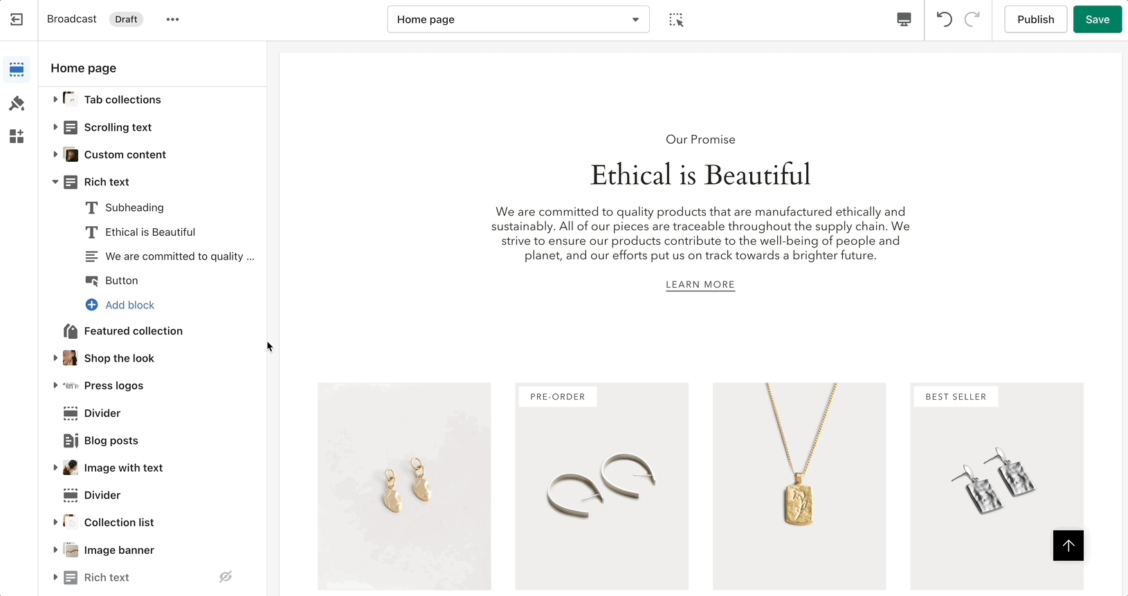 For what it is, 'Rich text' allows for a ton of customization. Use this section to tell a story to your customers.