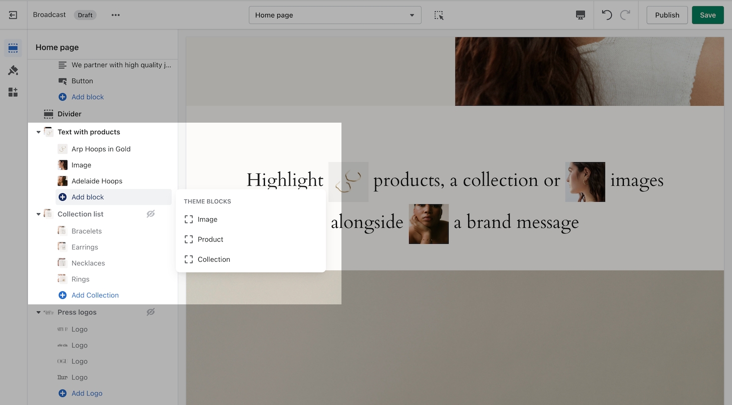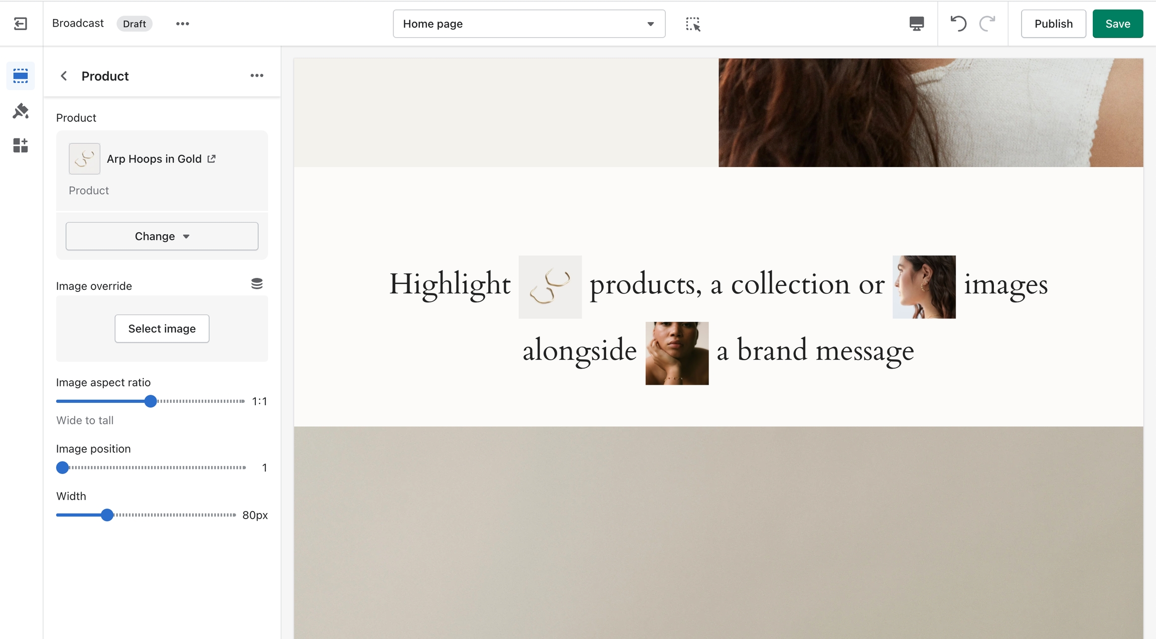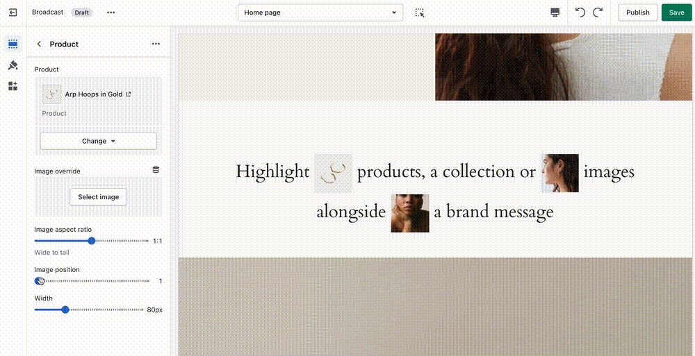 Highlight products, a collection or images alongside a brand message