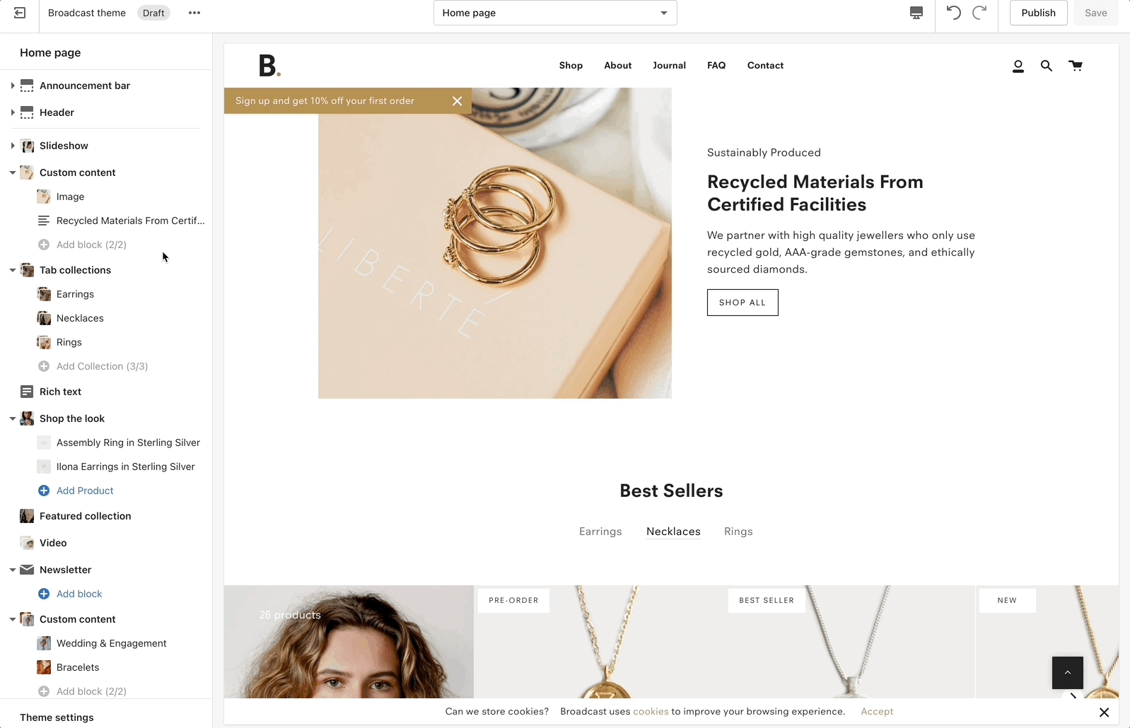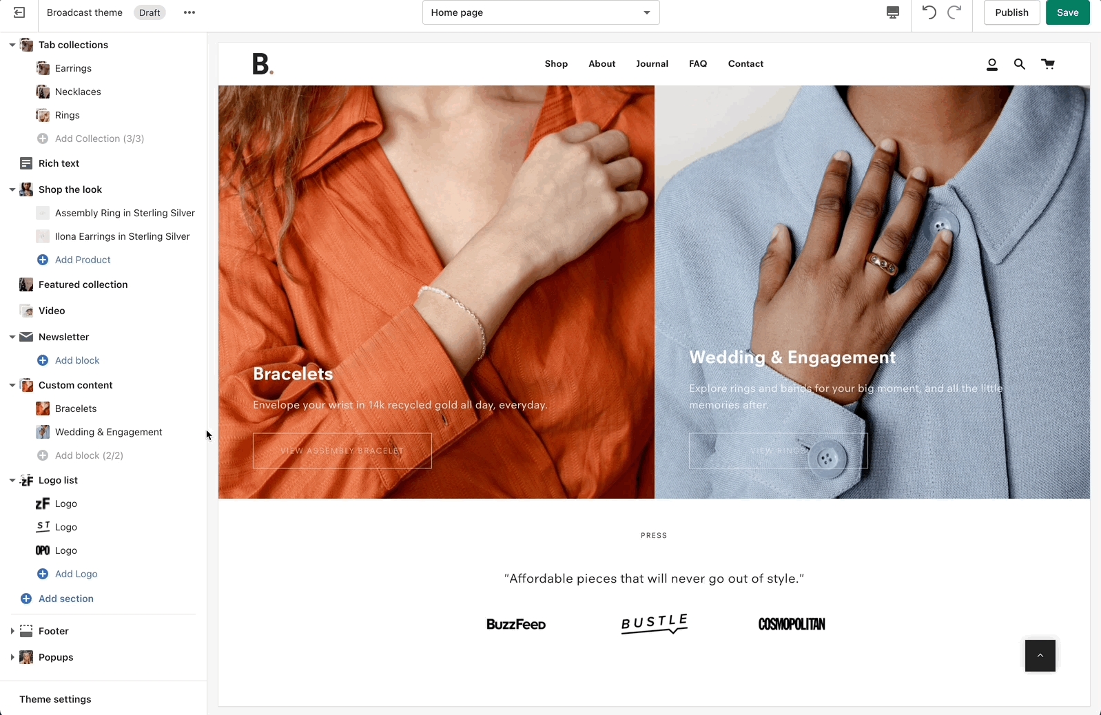 Explore the many different sections and block types in Broadcast to create beautiful and effective sections of content for your store.