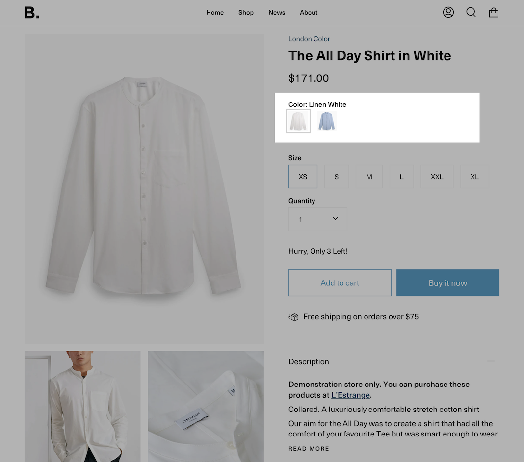 This metafield is used for both the swatch label for the product which helps with identifying the color version of the current product: