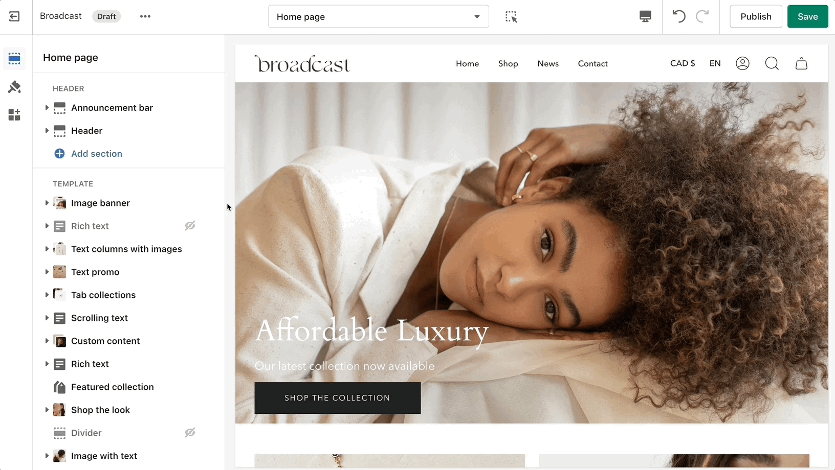 In the Theme Editor, click on the ellipses (three dots) icon at the top of the Theme Editor to view theme actions.