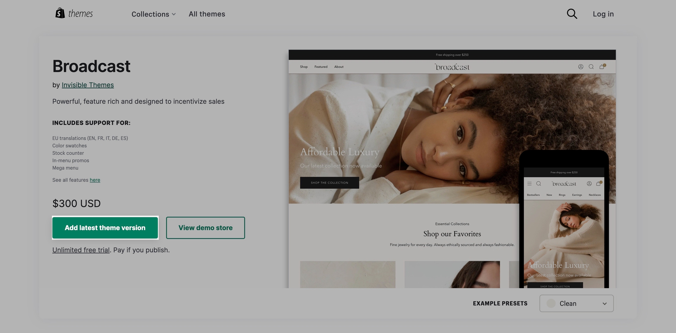 To download the latest version of Broadcast, please visit the Shopify Theme Store. The Shopify Theme Store is the official and only source for downloading Broadcast: