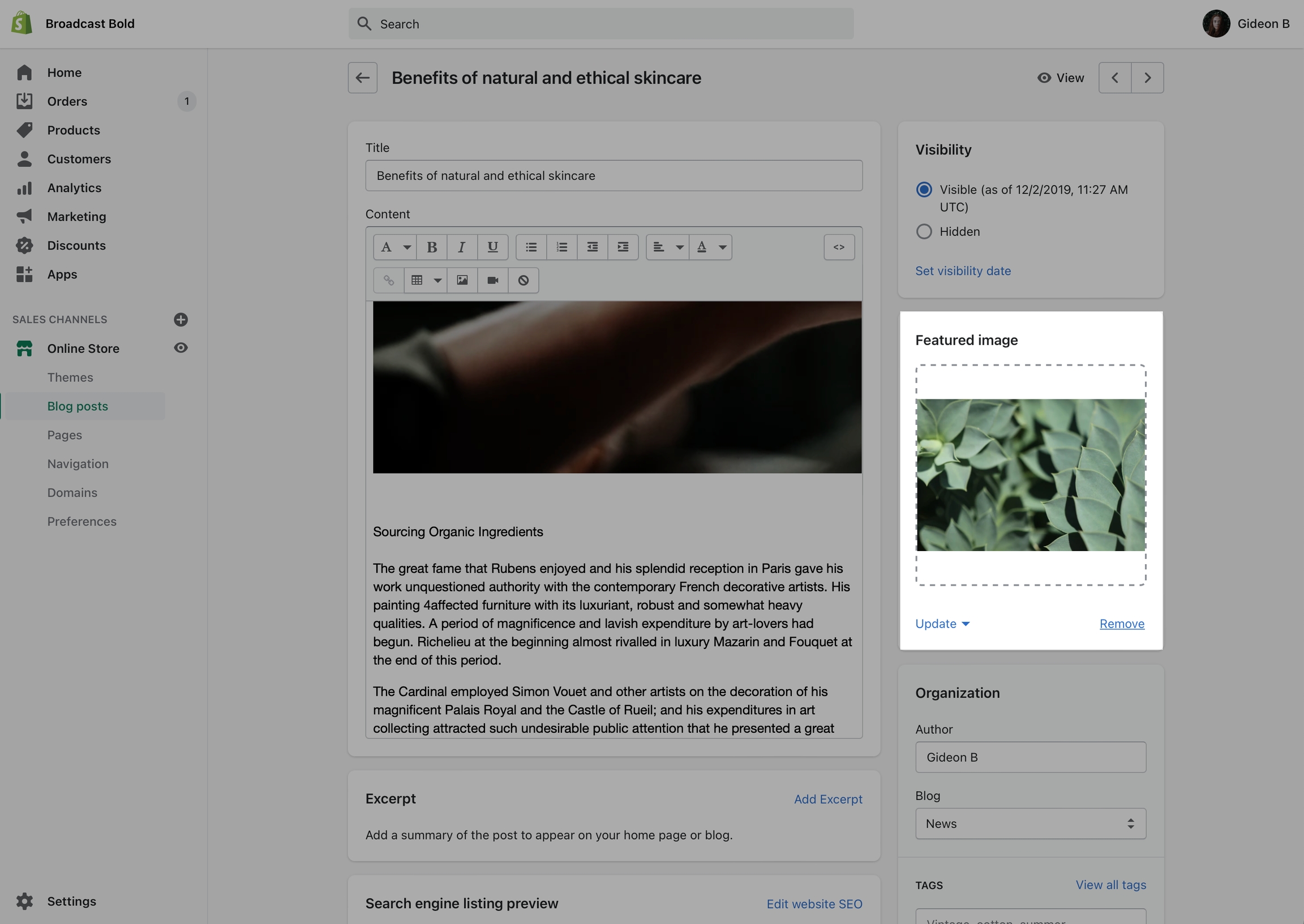 The hero image is derived from your blog post featured image: