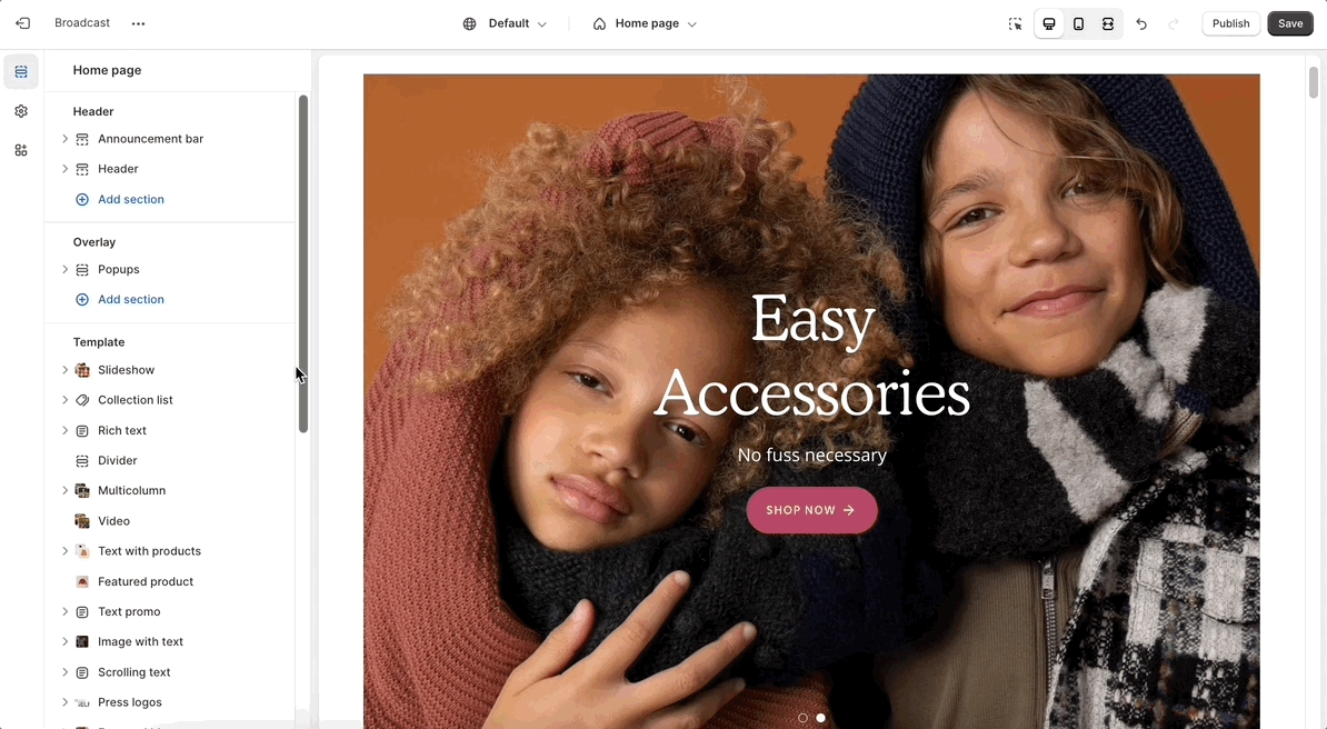 Explore the many different sections and block types in Broadcast to create beautiful and effective sections of content for your store.