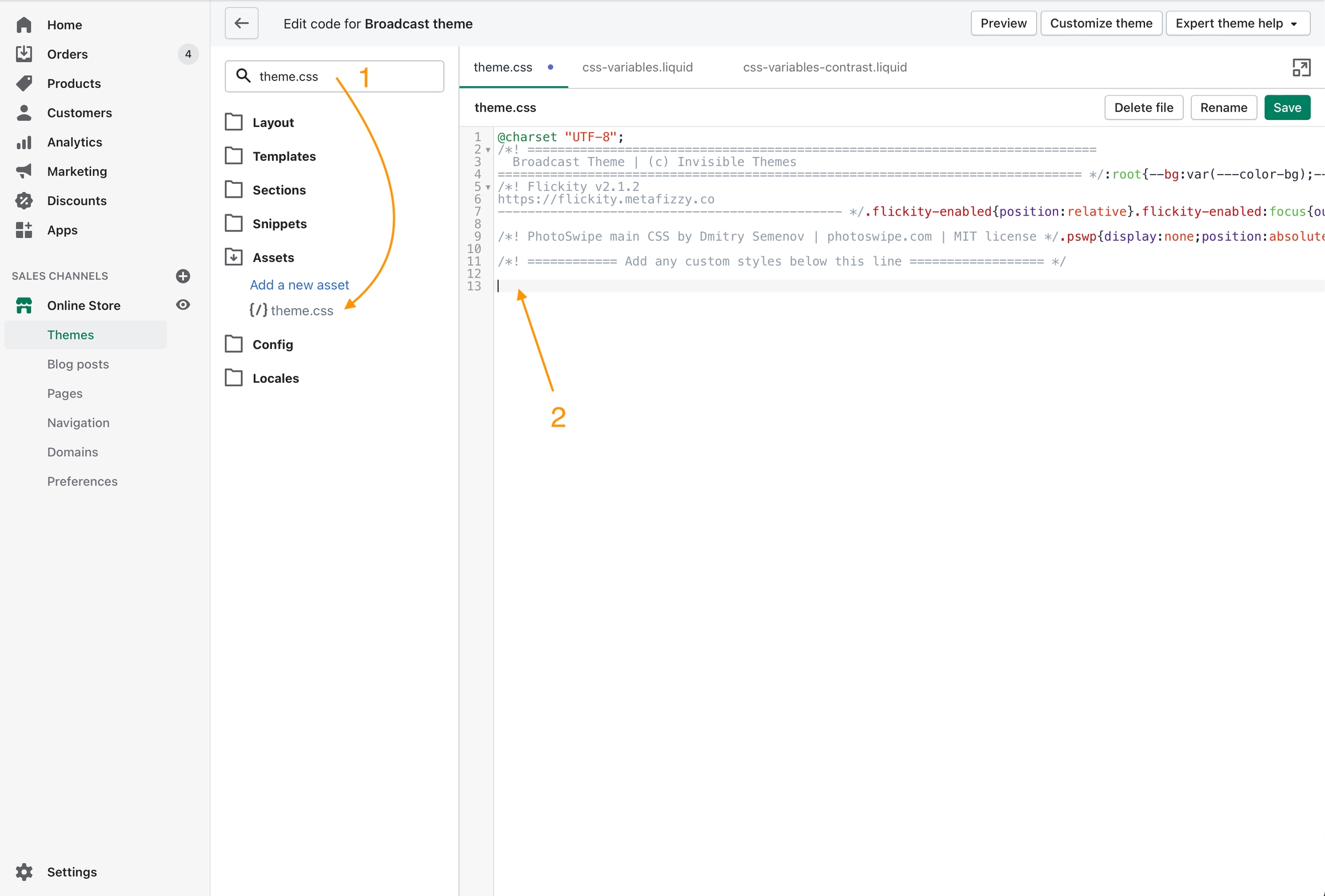 Shopify has made adding global and local CSS changes to your theme easy. Broadcast supports these Theme Customer methods. Some examples are:
