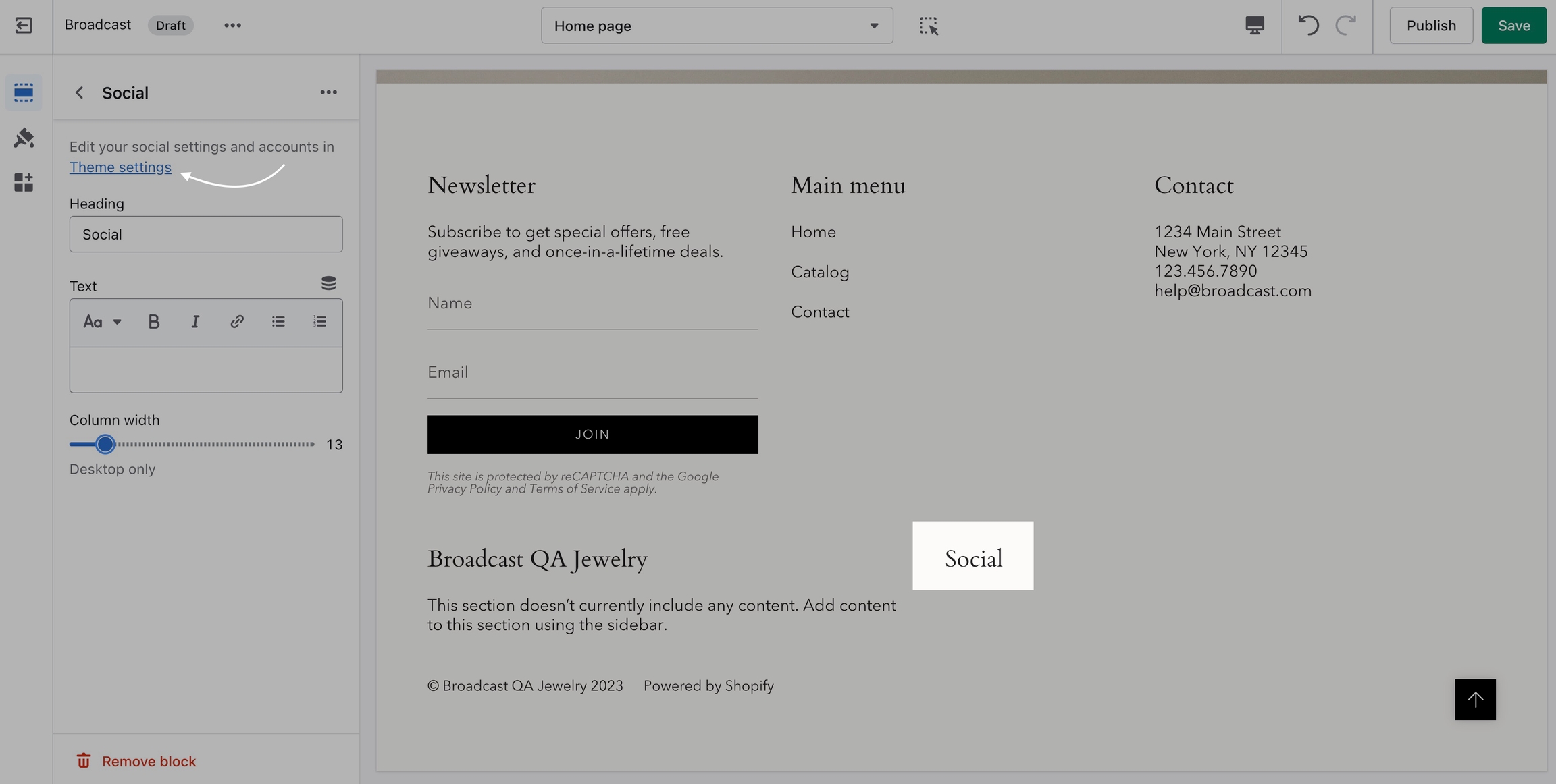 Icons automatically appear if a social network address has a URL address configured under Theme settings, Social Media: