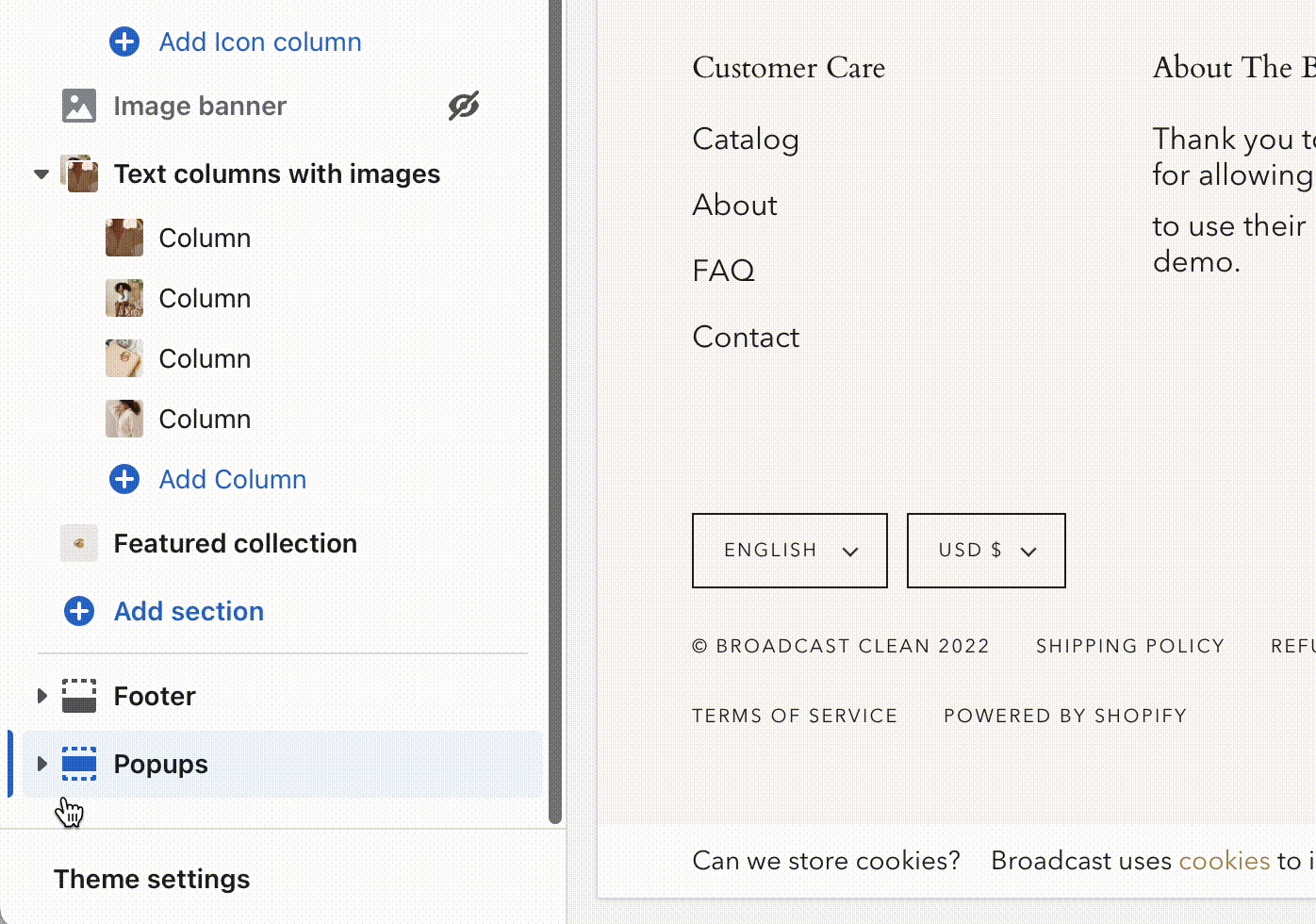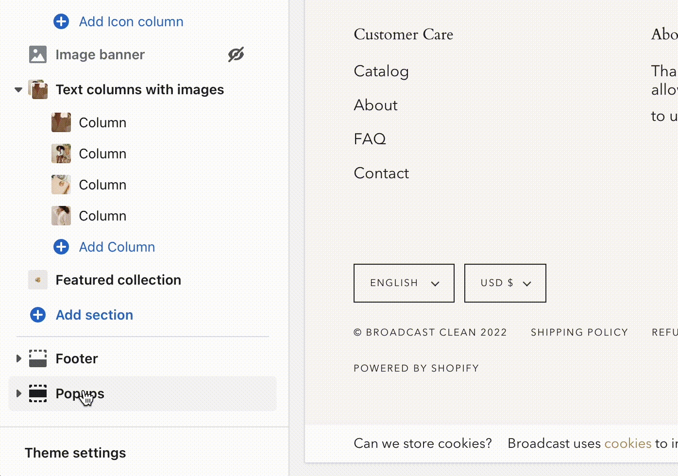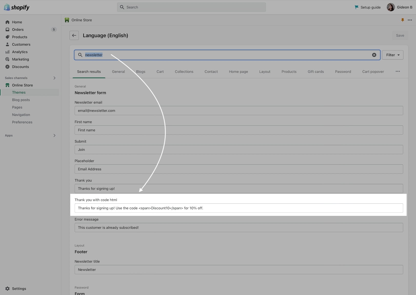 The Large newsletter uses the Language editor to manage the success message. This is especially helpful if your store is supporting multiple languages.