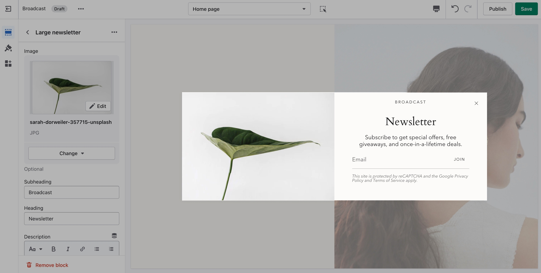 'Large newsletter' can be used as a newsletter popup or as a sales promotion tool to display custom messages.