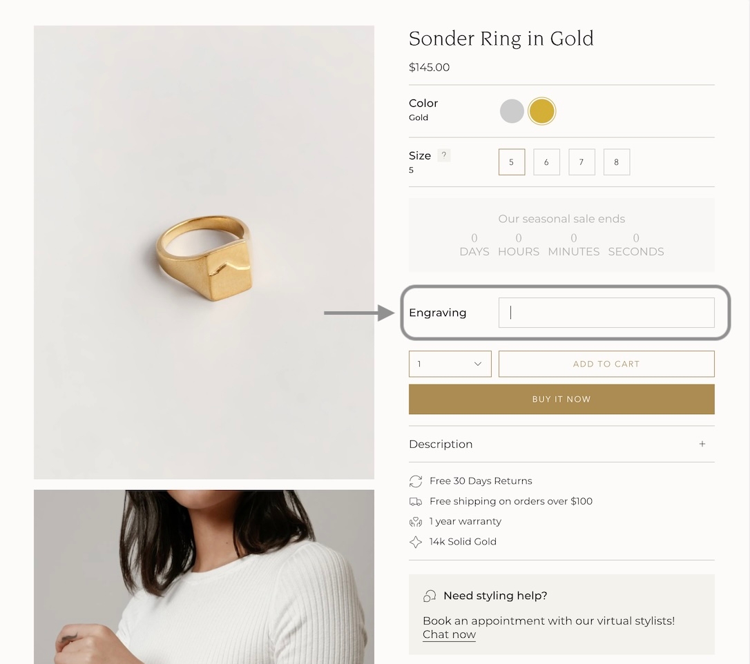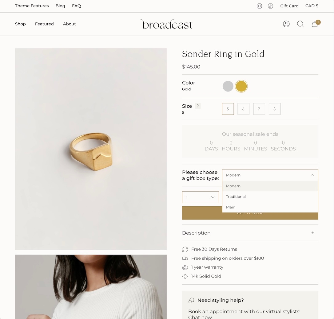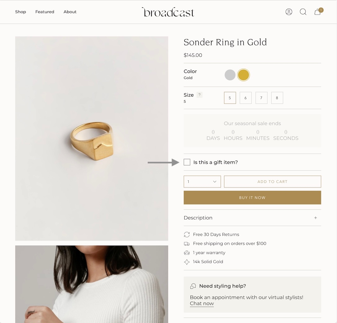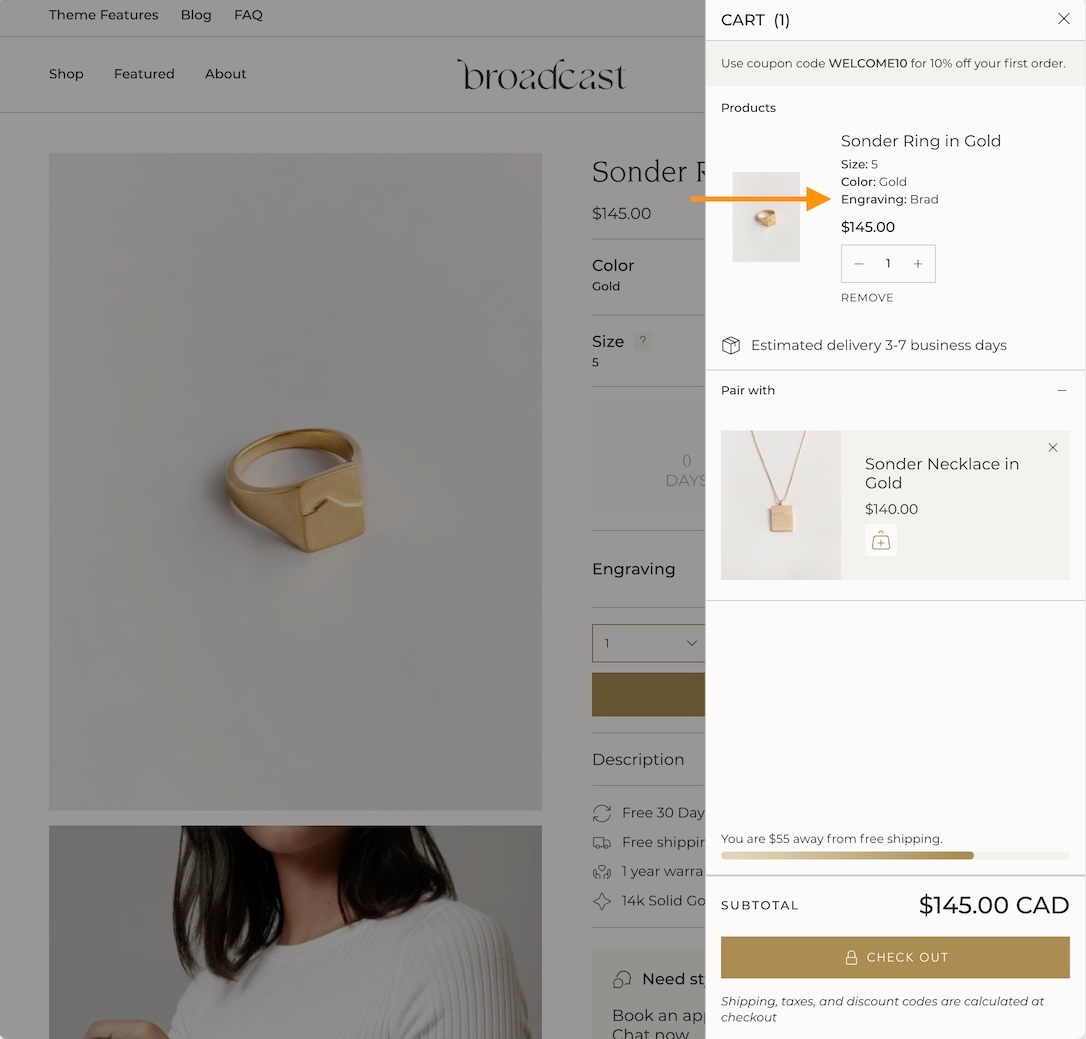 Broadcast includes the "Line item property" block, which helps you collect additional information from your customer and attach that to the product.
