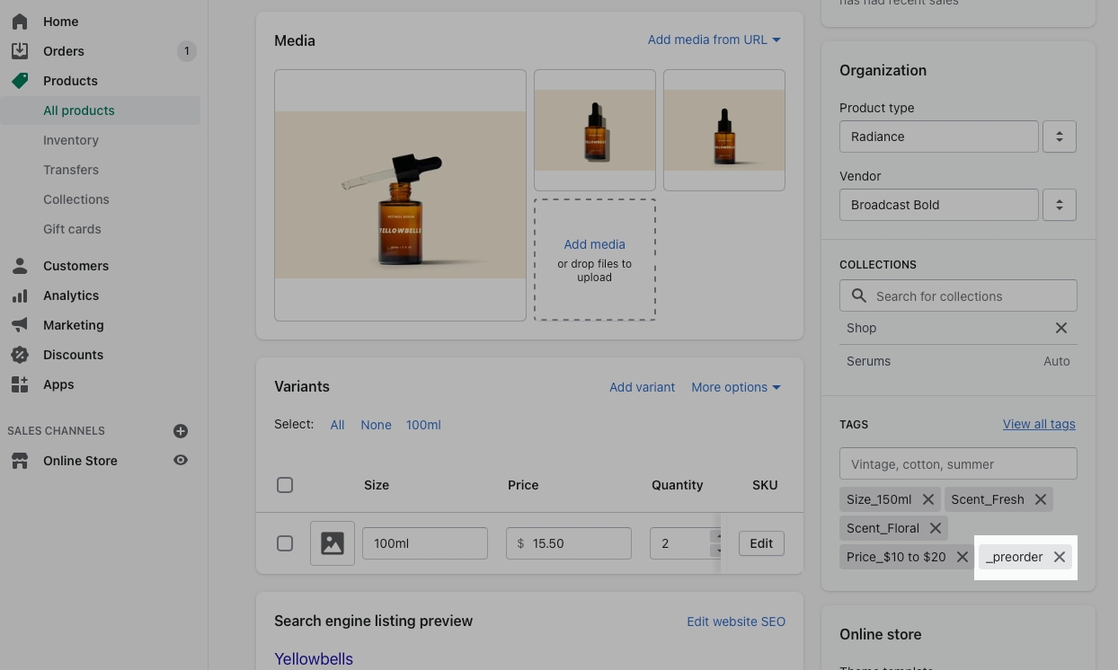 When Broadcast sees a product with this tag, the 'Add to cart' button will automatically be changed to 'Pre-order'.