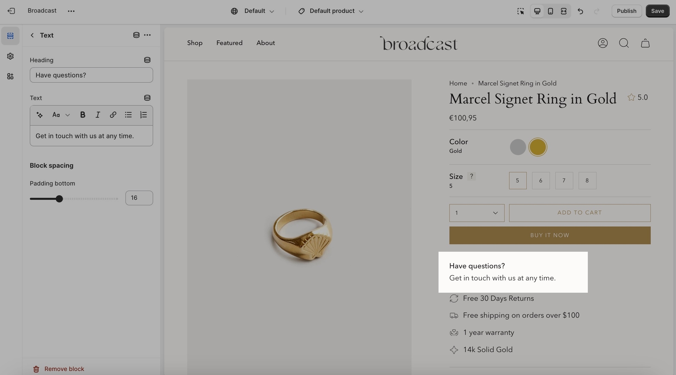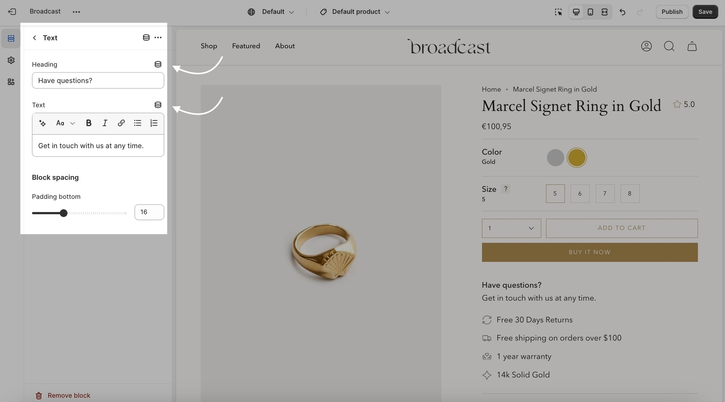 Tip: Do not use regular text in combination with metafields. For best results always use one or the other.