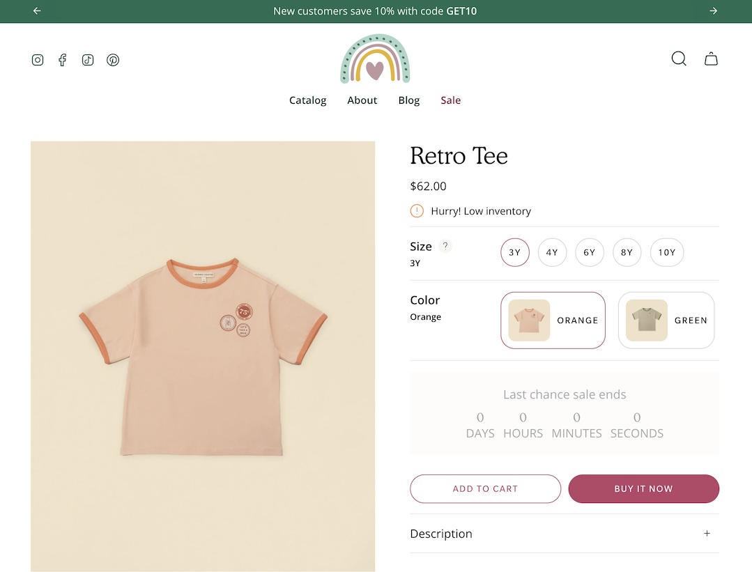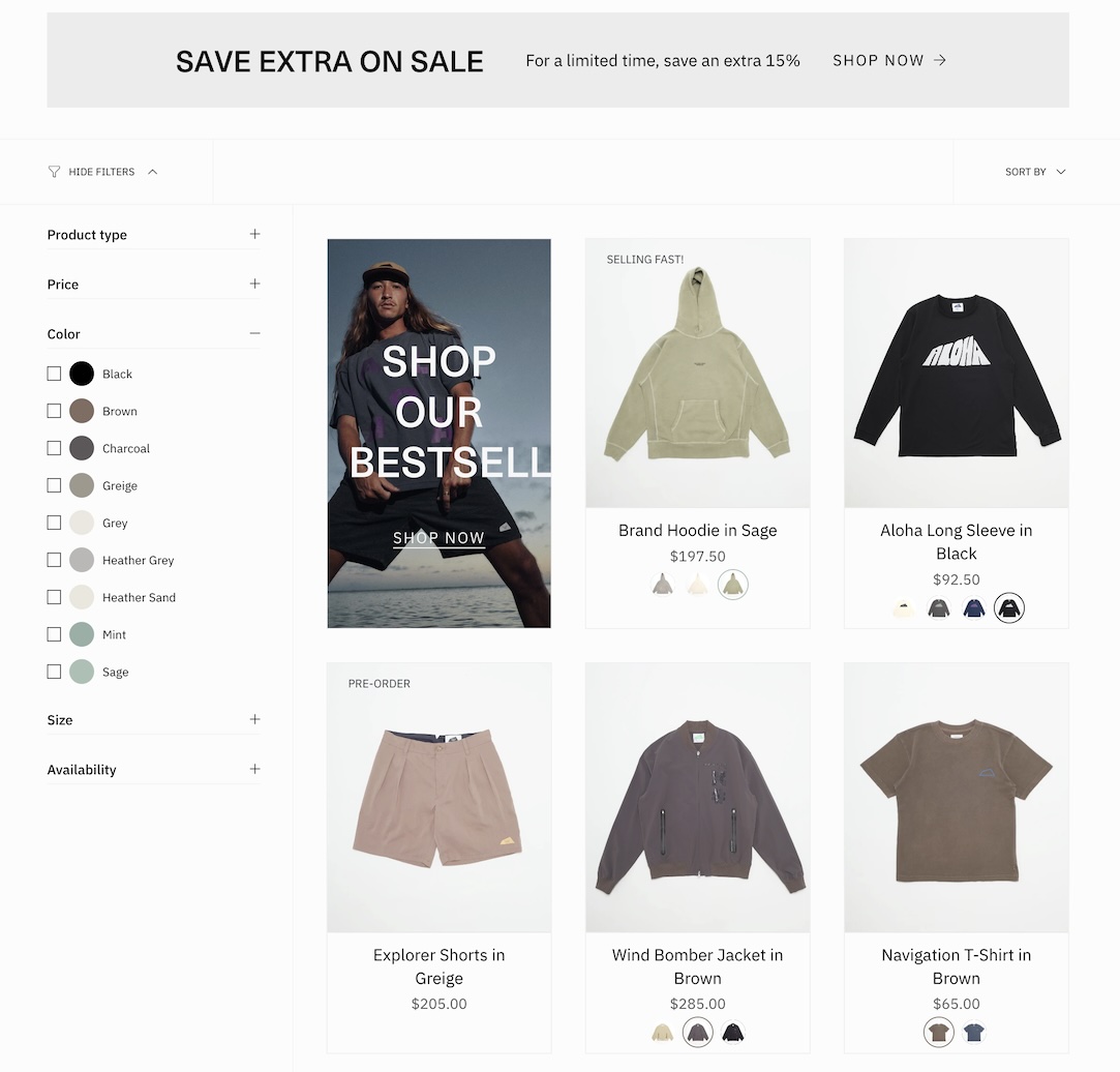 * **Product images** are displayed **as swatches** on **both** the collection grid and product pages.