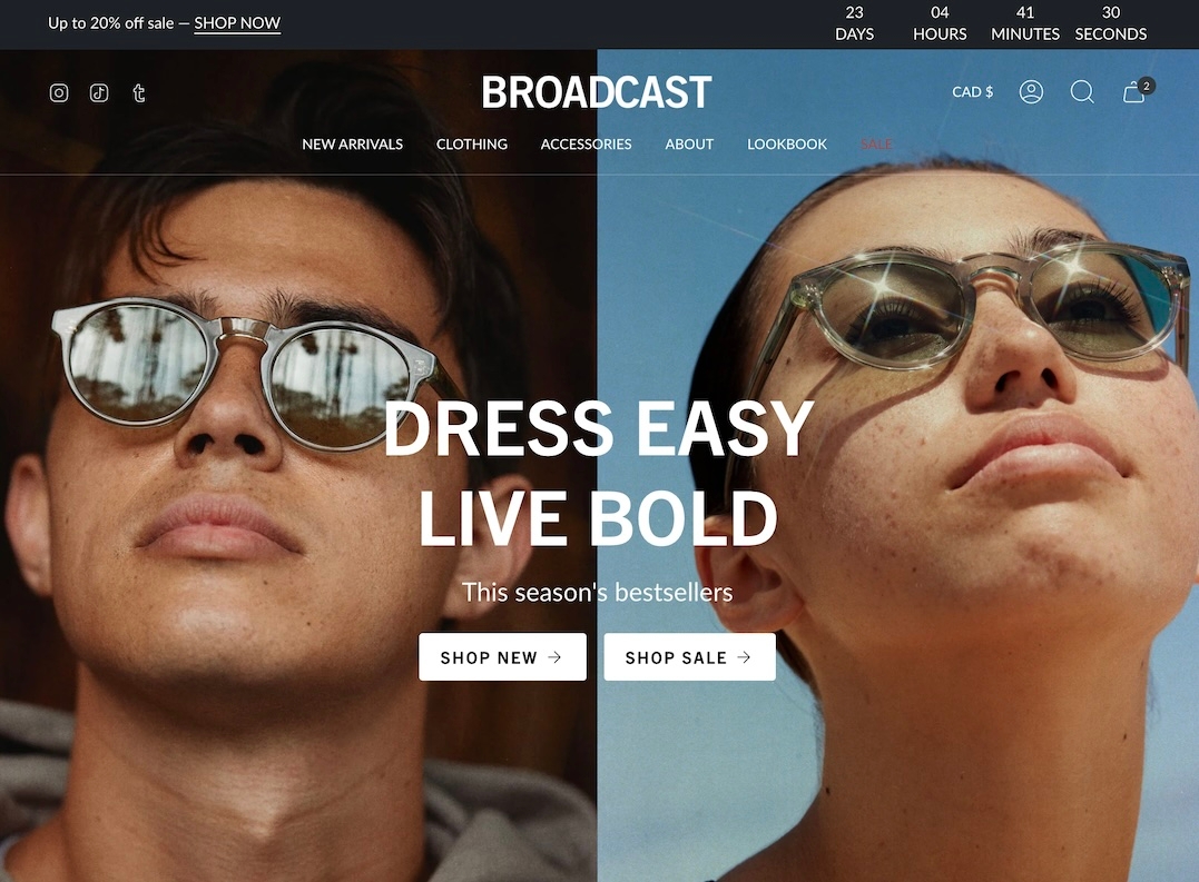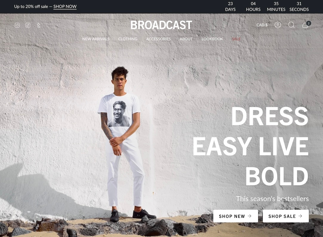 Broadcast's hero-style section lets you quickly build a powerful banner section with one or two split images.