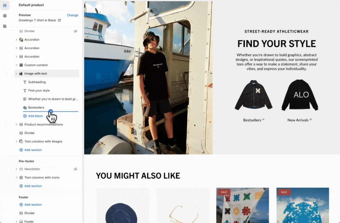 This video demonstrates how to build and customize the Image with text section, including block variations and mobile options: