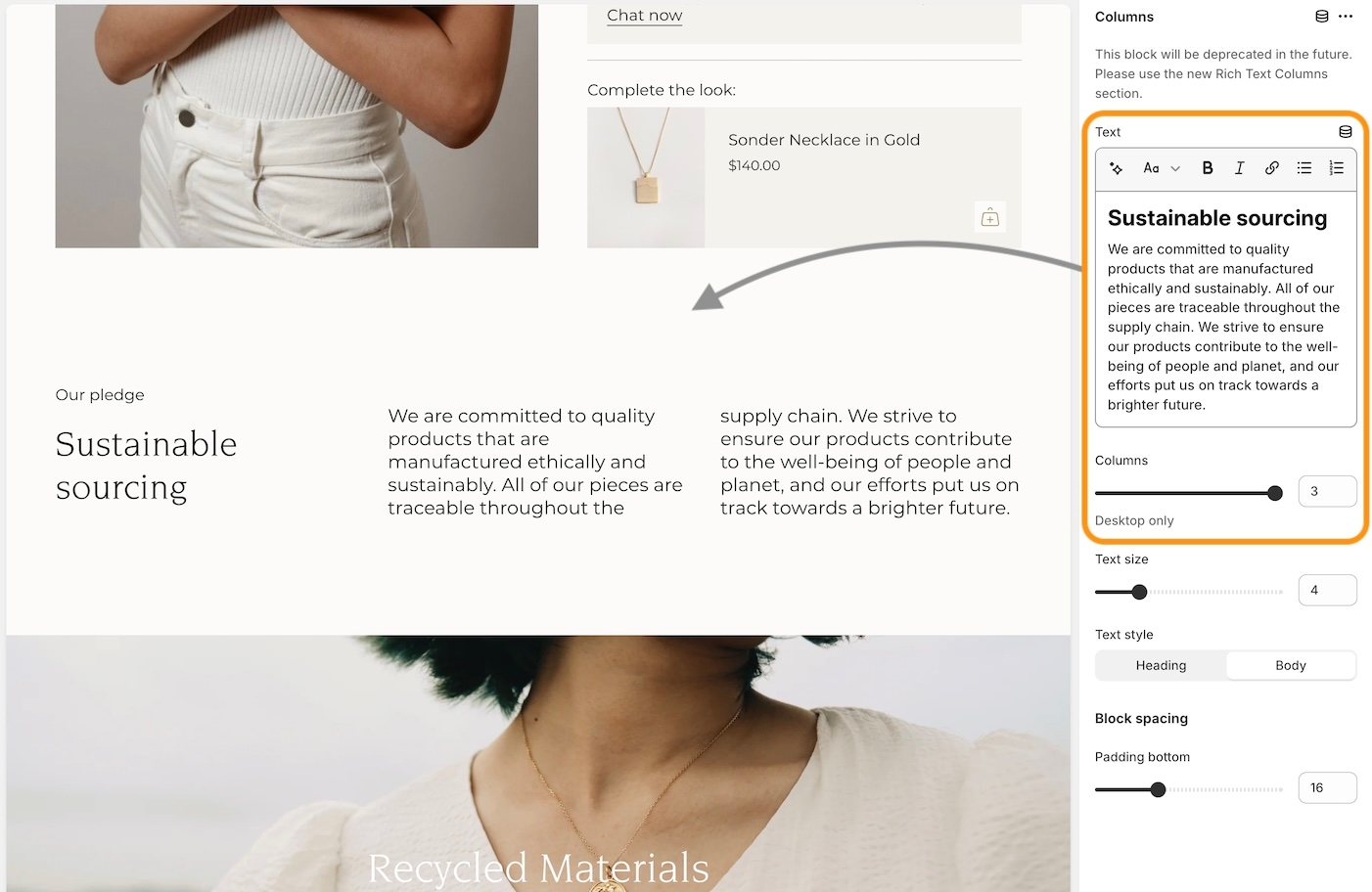 Introduce sections with rich text. Place the section above another to build a seamless look: