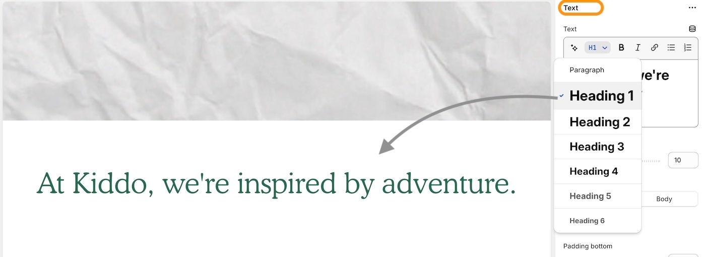 Broadcast's rich text section is the simplest method for adding text or headings above or between sections. It allows you to add large or short messages with headings, subheadings, and text styles.