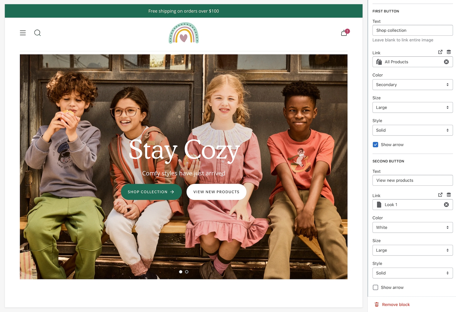 A new section added to Broadcast with an engaging presentation of images presented in a dynamic format, featuring full-sized graphics and prominent text to promote collections within your store: