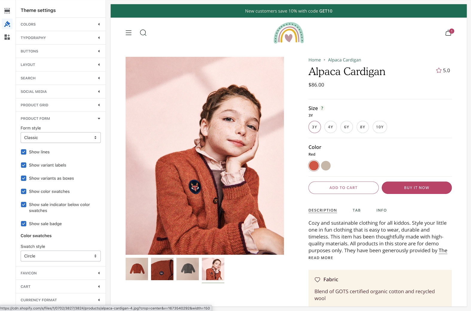 The Classic design is suitable for customers with a large number of variants. Since the labels are displayed above, there is more room below for the variant options.