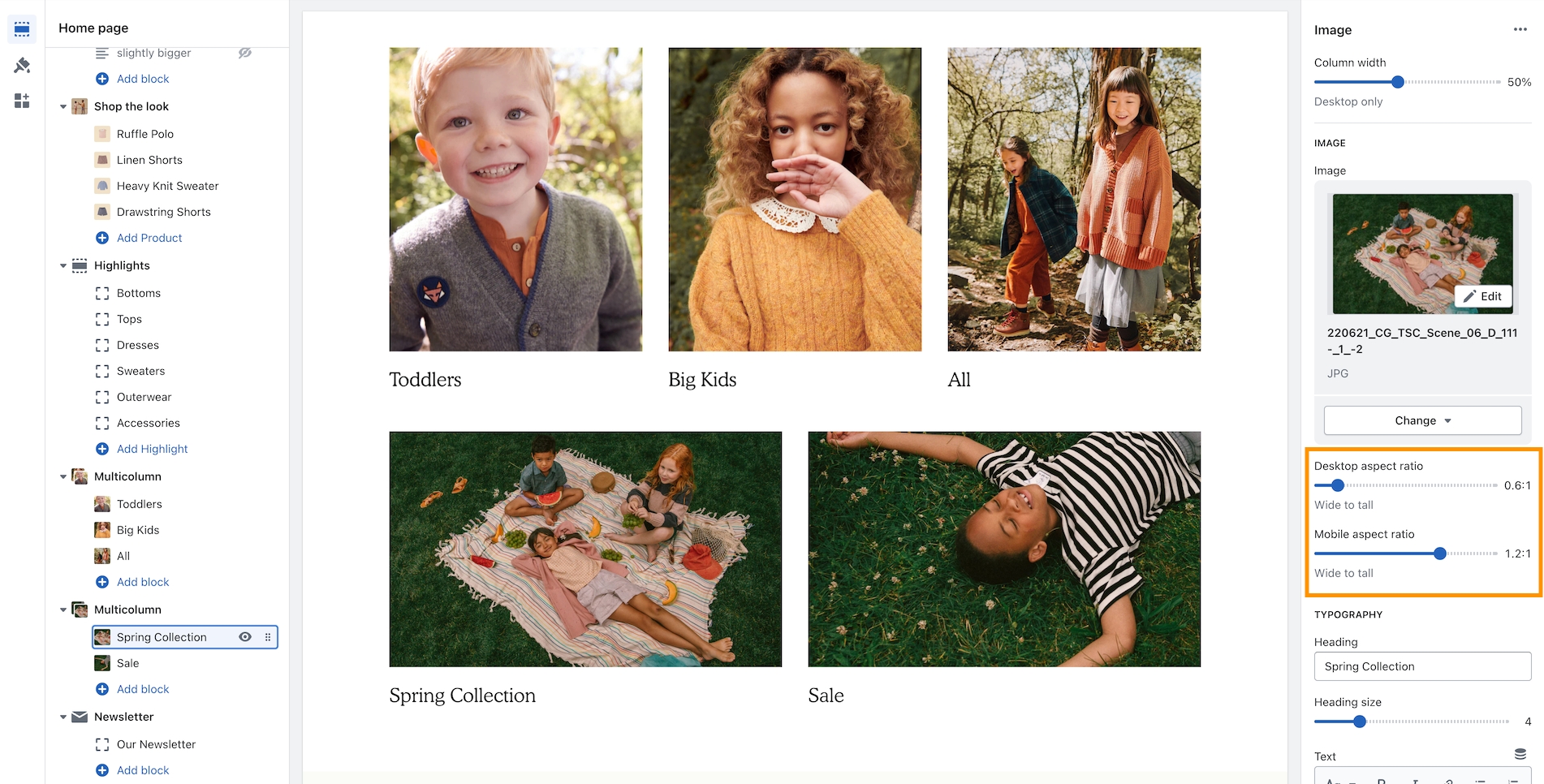An image aspect ratio for mobile has been added in Broadcast 5.0. This will help provide more flexibility when designing complex layouts. In the example below, two Multicolumn sections are used to build a mosaic. The second has wider images. With the new settings, the mobile aspect ratio can be adjusted to make the images consistent with the section above: