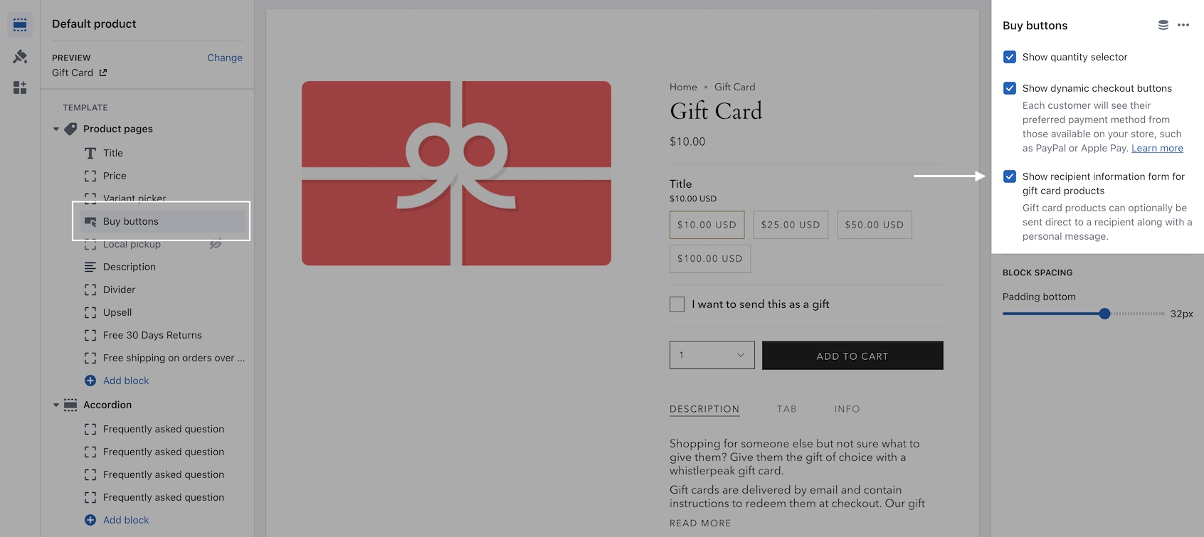 Customers can now send a gift card directly to the recipient's email and include a personal message.