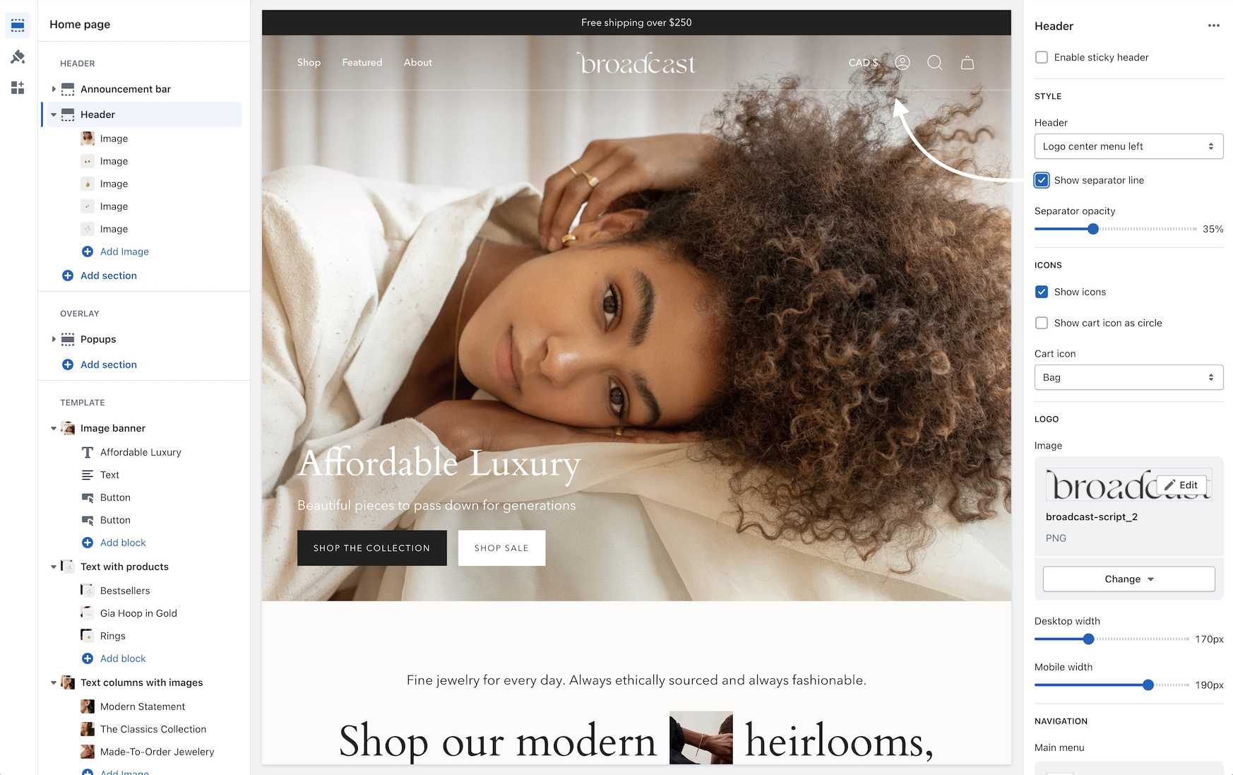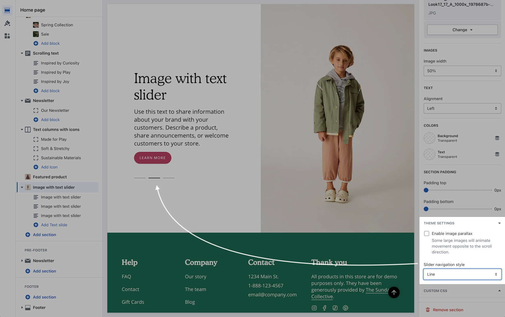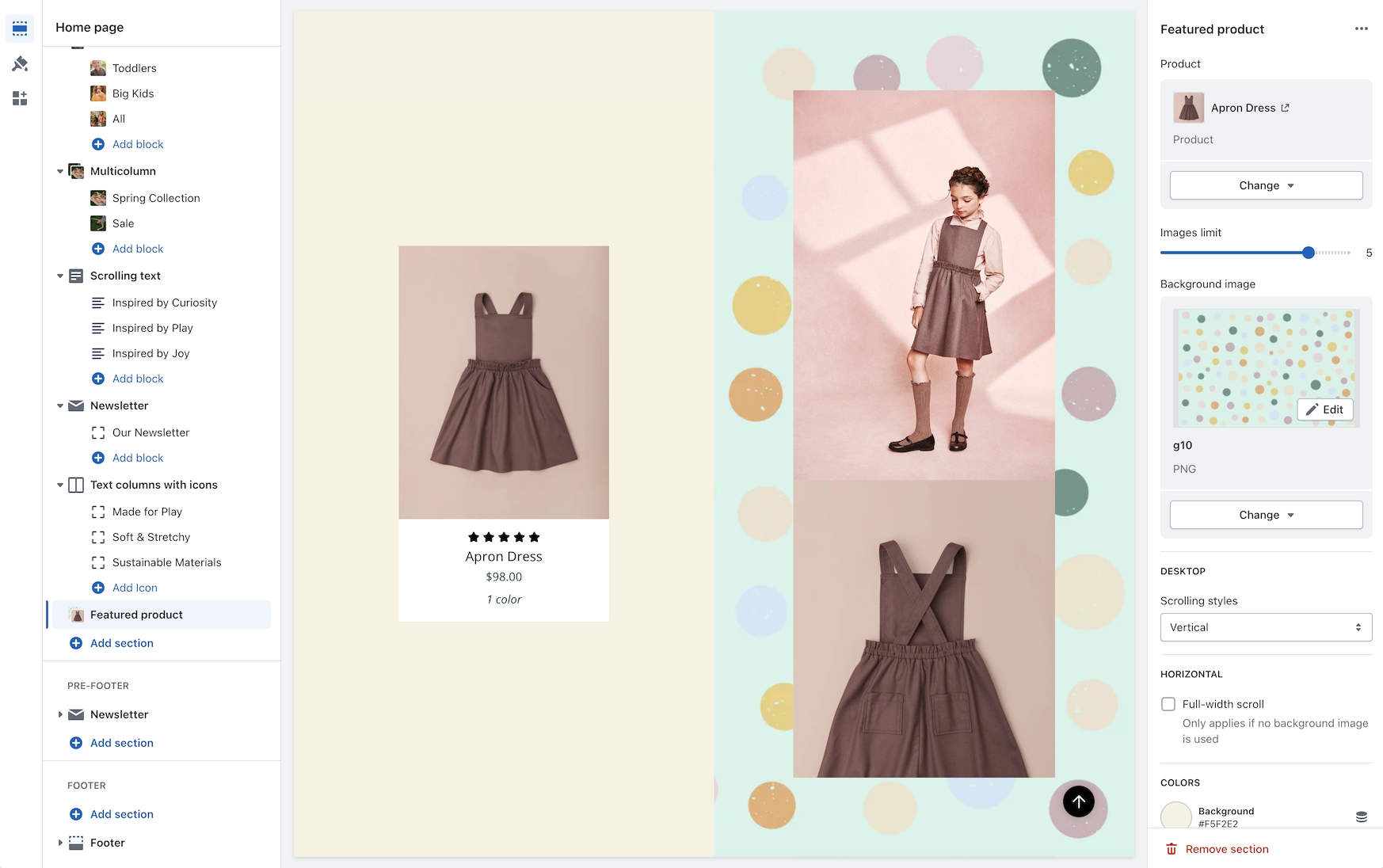 Fresh new design for the featured product section with new image scrolling options and additional section settings:
