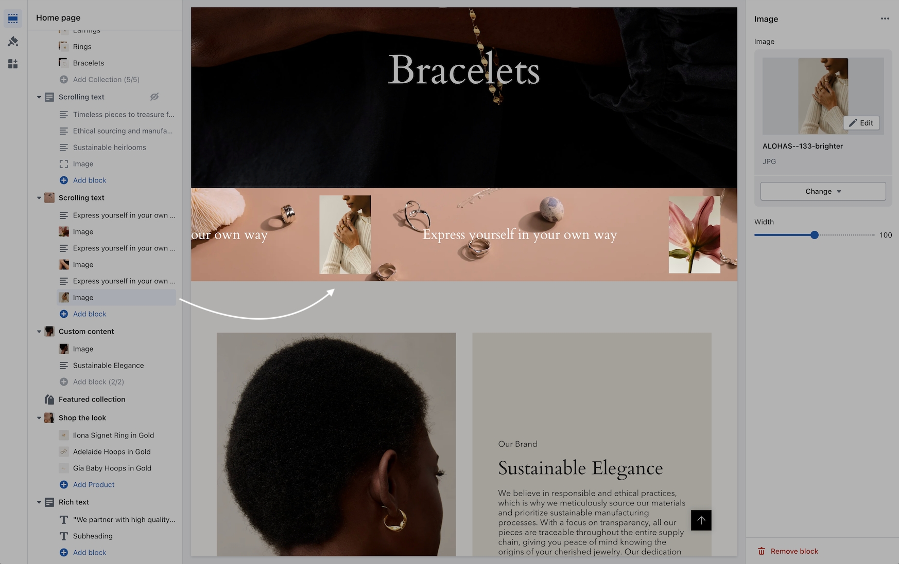 You can now add a background image to the scrolling text section and also image blocks in-line: