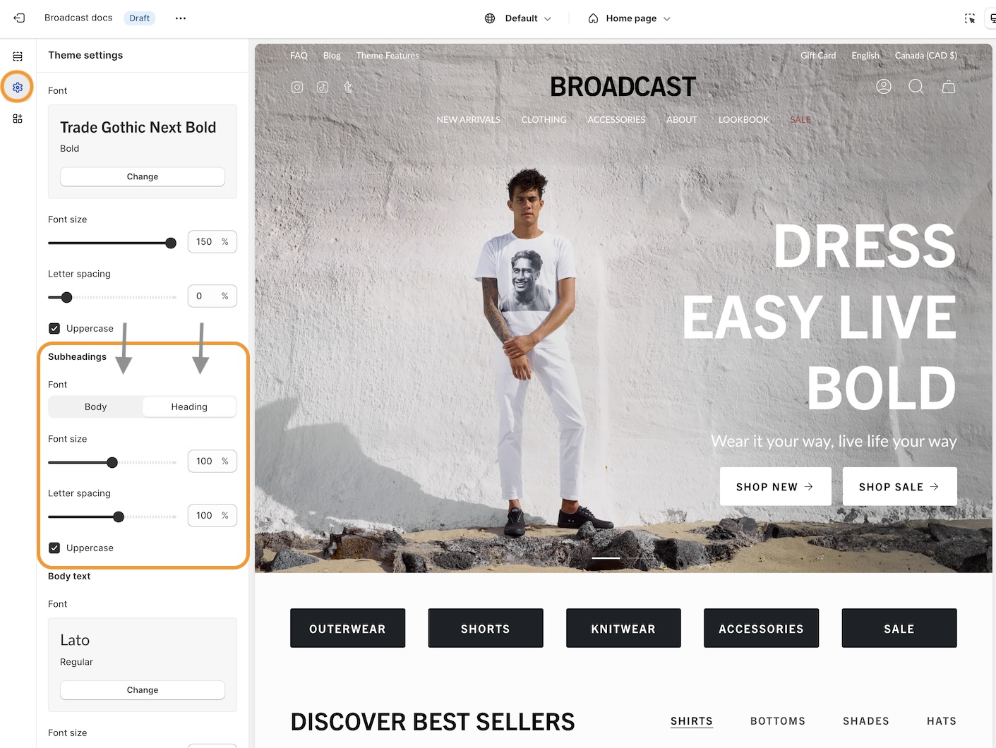 Adjust the font sizing, and letter spacing, plus an option to make subheadings in all uppercase.