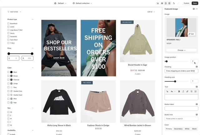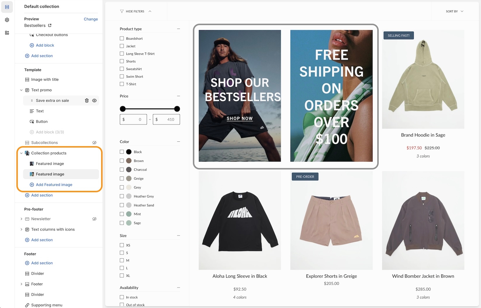 Now, you can add multiple promotions to your collection pages. Additional Featured image blocks can be added to collections: