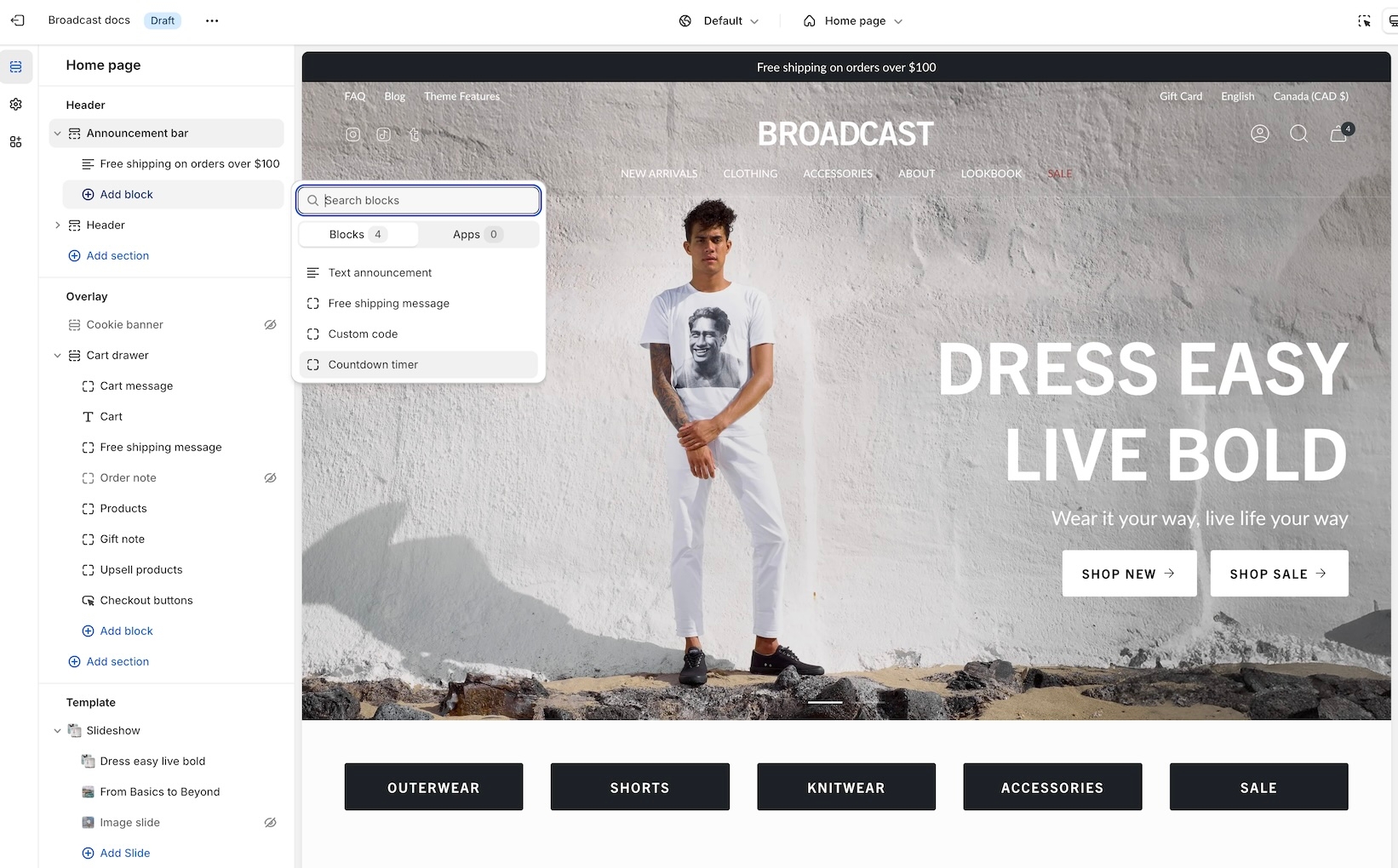 Add a sense of urgency right into the main announcement bar with the new countdown timer block:
