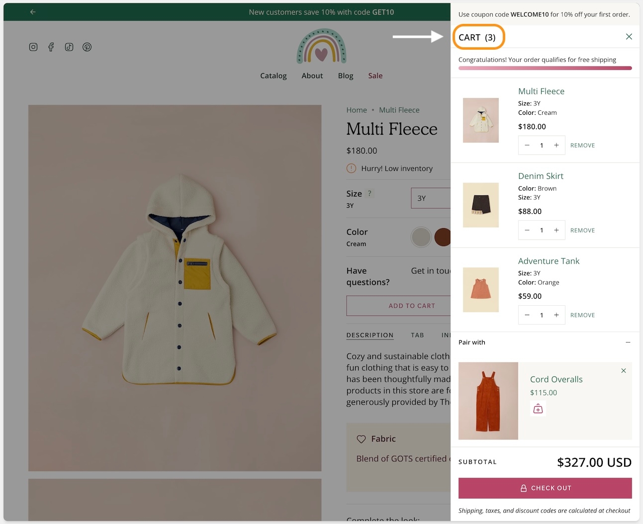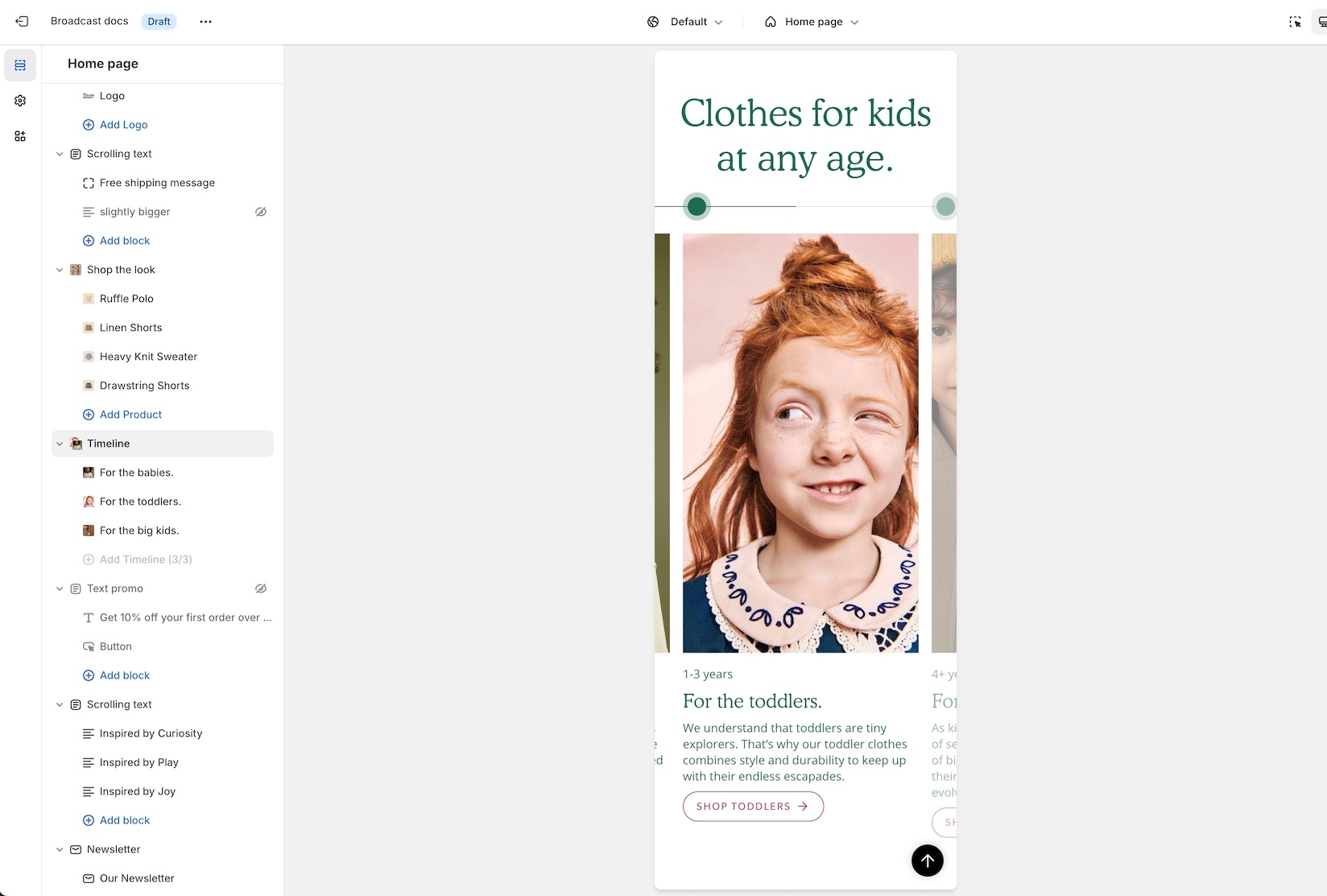 The Broadcast Cart now has blocks to customize the cart experience for your customers. Sort and arrange cart blocks, plus pin certain blocks to the bottom near the checkout button.