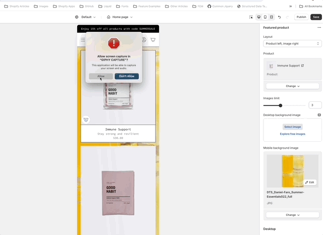 The background image remains sticky as the Featured Product elements are scrolled through: