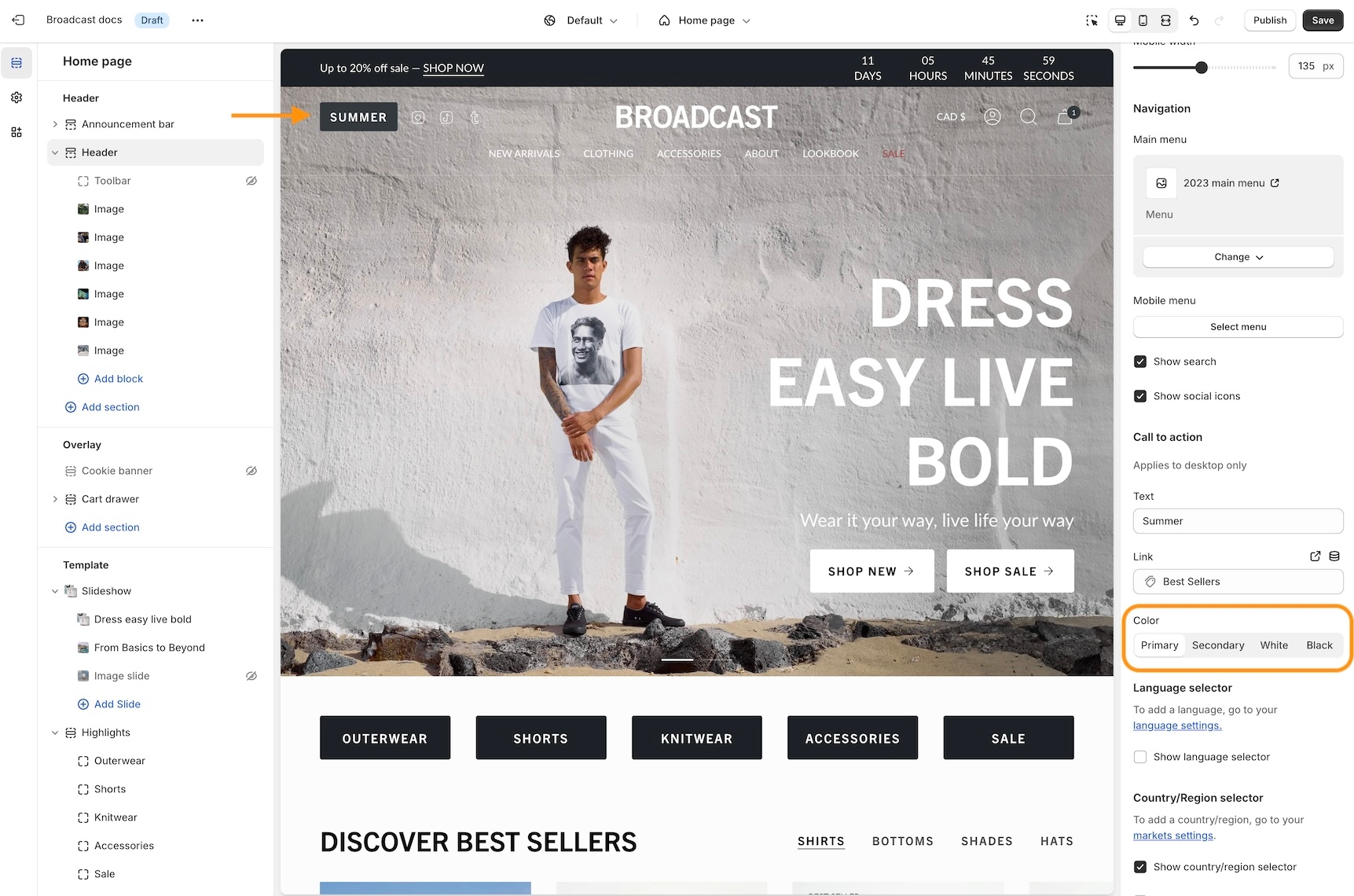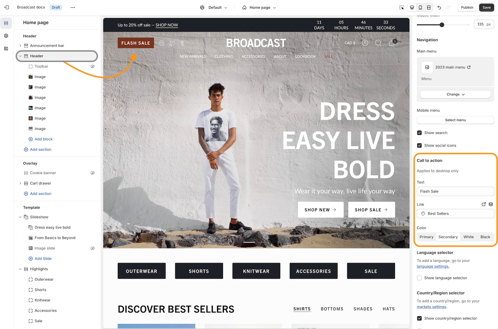 Now in Broadcast, you can add a call-to-action button right into the Header area: